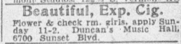 But 10 days before the anticipated opening, a snag came up. Neighbors objected to the venture, citing concerns about the noise and parking. The Police Commission ultimately denied the sisters a permit, asserting that the building was in a “residential zone” not a commercial one. Which is strange because the Haymarket ye olde New York-style music hall nightclub was able to open at the same time with no problem just a couple doors down on the other side of Las Palmas at 6666 Sunset, the former Vendome building. If it makes the Duncan’s feel any better, it only lasted a month.