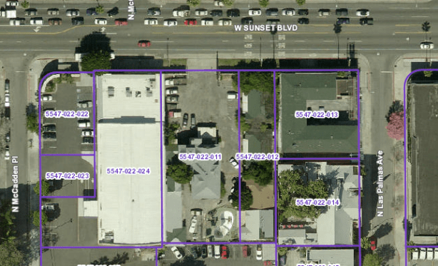 After the mansion was demolished, the newer portion of the building added by the Writer’s Club in 1922 still remained. Alterations were made as necessary for it to be a stand-along building. In October 1951, the deep parcel was cut in half, the theater addition portion sold to the bungalow court next door at 6720 Sunset.