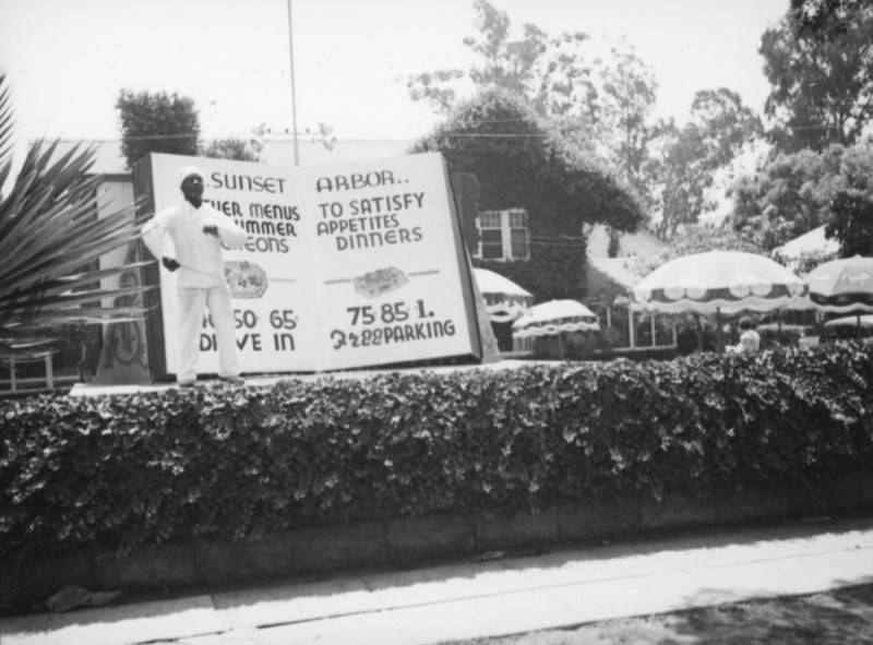 The same month, Las Palmas and Sunset Corporation leased 6700 Sunset to Chicagoans Mrs. Margaret Woodward and William Harrison for use as a restaurant, Sunset Arbor. The building was refurbished, refurnished, repainted, redecorated and remodeled. Meals would be served in the dining room and in the large screened-in porch as well as outdoor dining on the lawn. The auditorium, game rooms and supper rooms were available to rent for parties. Sunset Arbor with its all women cooks opened April 1, 1937.