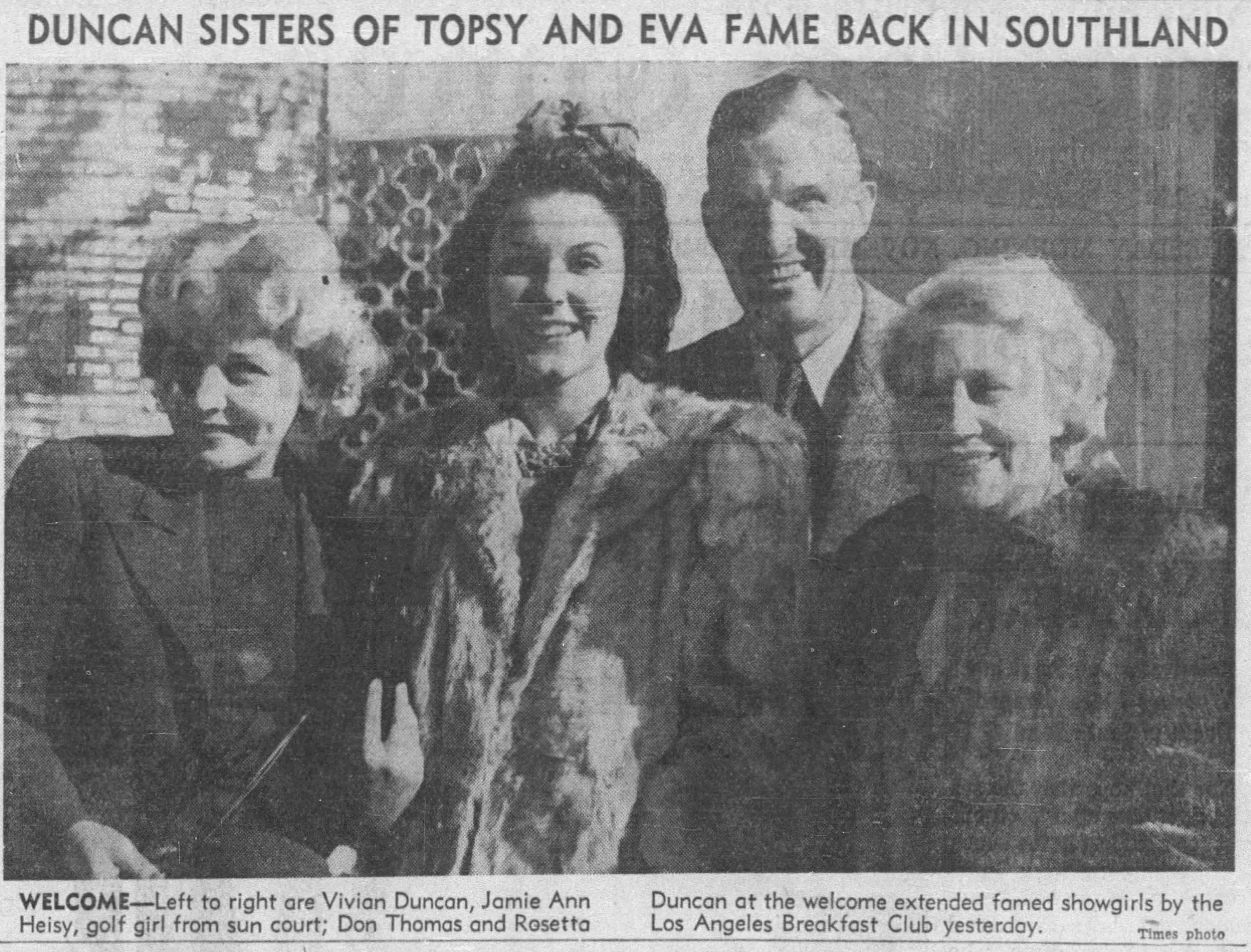 In November 1940, grown-up child performers, the Duncan Sisters (Rosetta and Vivian) returned to Hollywood.