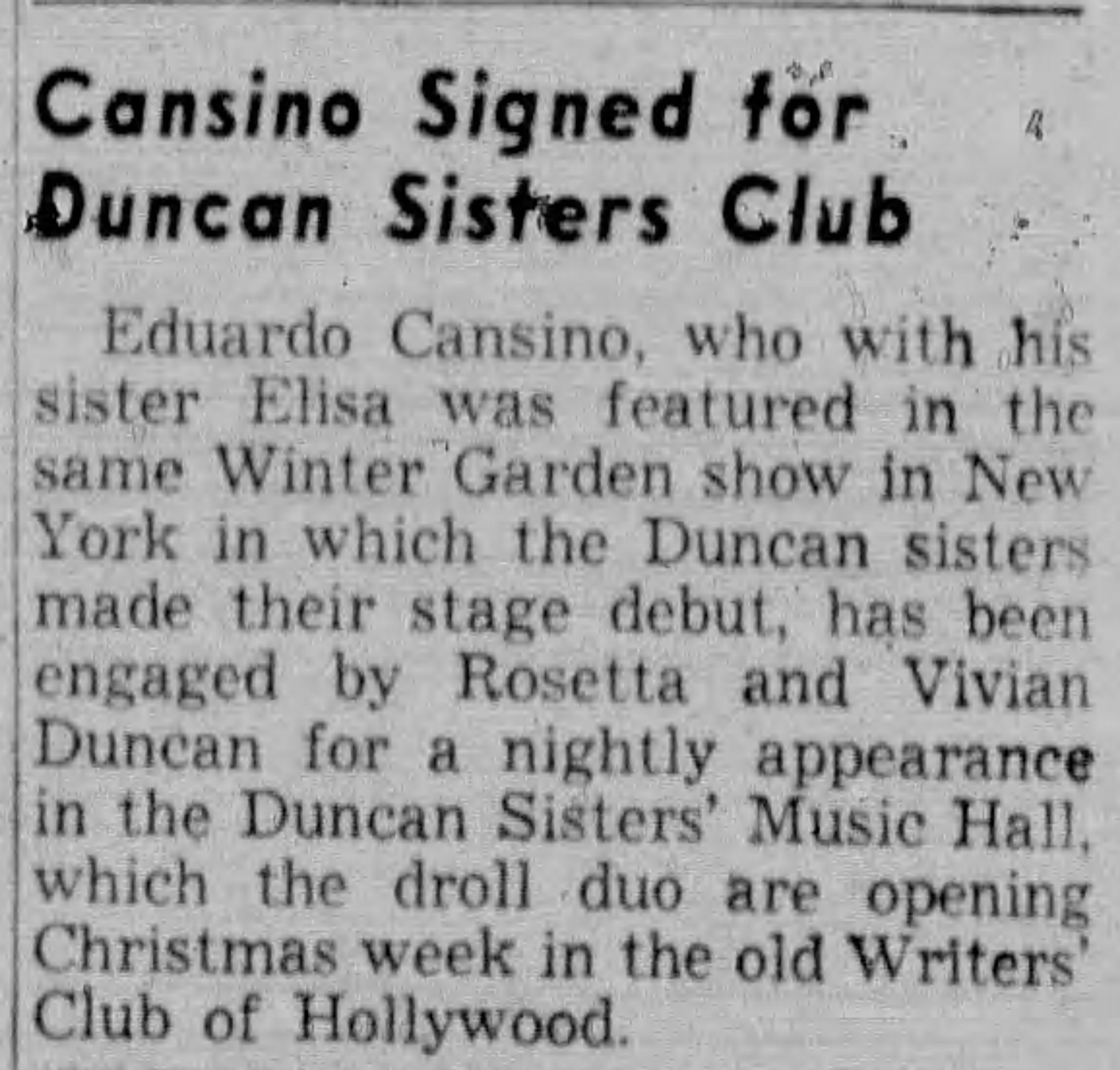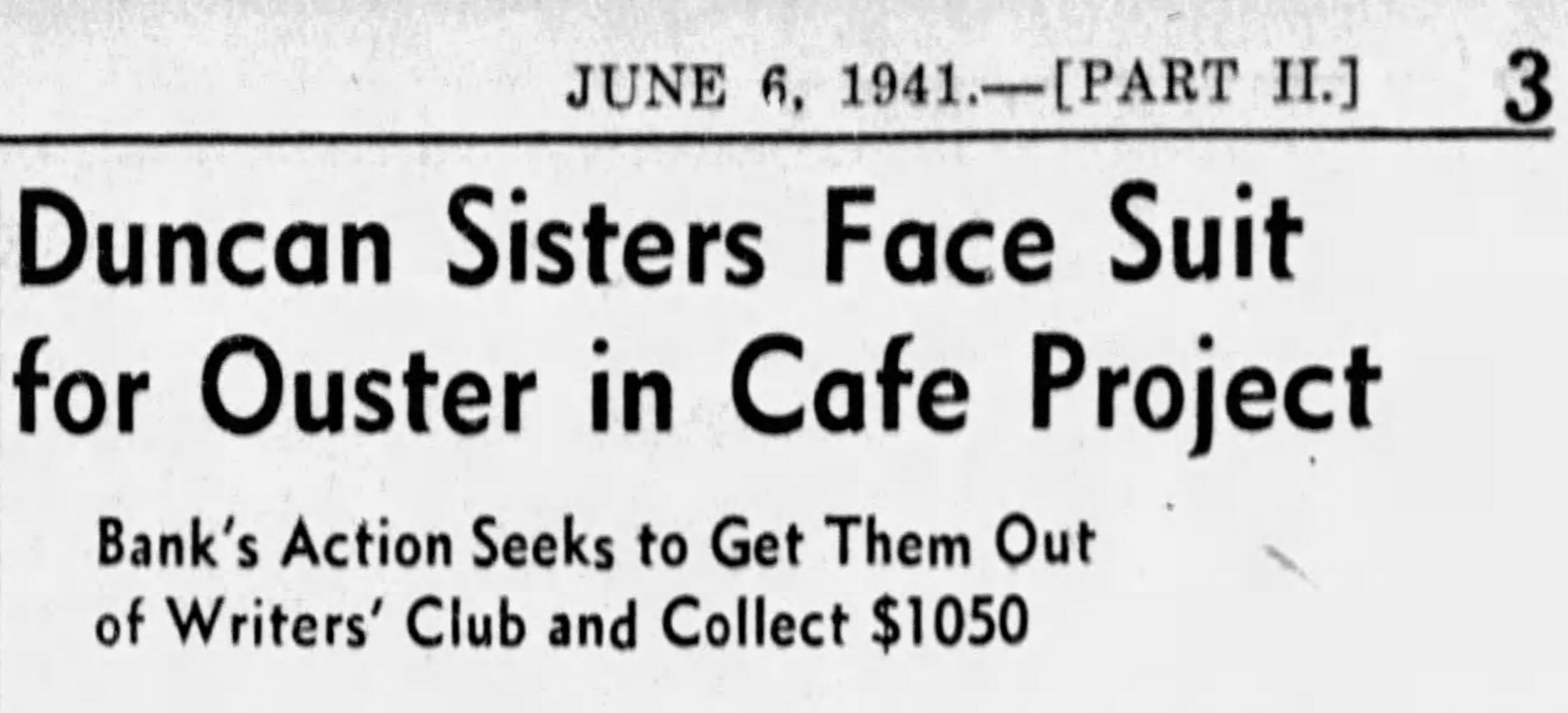 In late February, the club was assertedly going to open “within two weeks.” But March and April passed. In May, 1941, the Duncans had supposedly resolved their zoning issues and developed a new show for the imminent opening that never came.