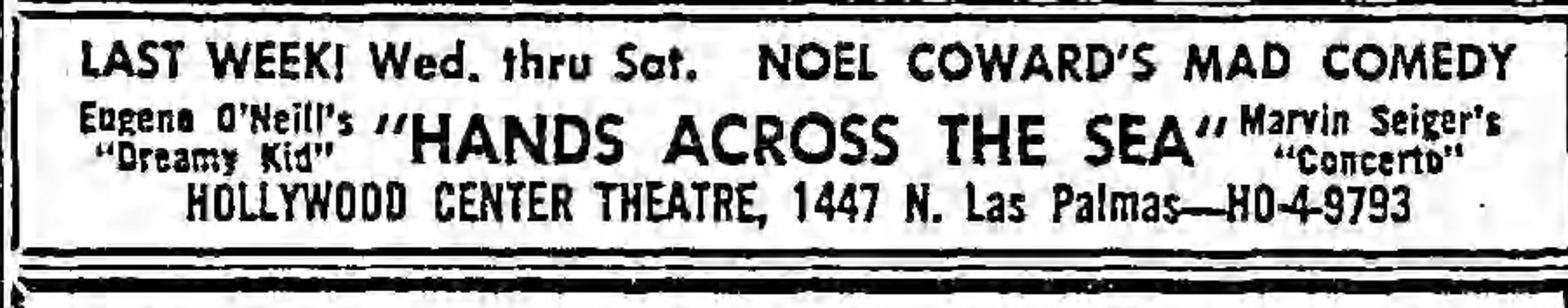 By 1957 it had become the Hollywood Center Theater. The Writers Club never used this address. It was 6700 Sunset Blvd. 5/20/1957. LAT.