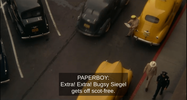 In the film, the taxi driver who brought fictional Harry to Siegel’s house is a key witness and is spirited out of town (with help from Cohen and the corrupt DA) so he can’t testify. In reality there was no taxi driver. The key witness was Abe Relles, who “fell” out of his window, never to sing again. Another witness, Al Tannenbaum, testified to Siegel’s personal involvement in Greenberg’s murder- but as a con-conspirator, Tannenbaum’s testimony alone could not convict and Siegel was indeed let off “scot-free” as the movie depicts. That much was true.