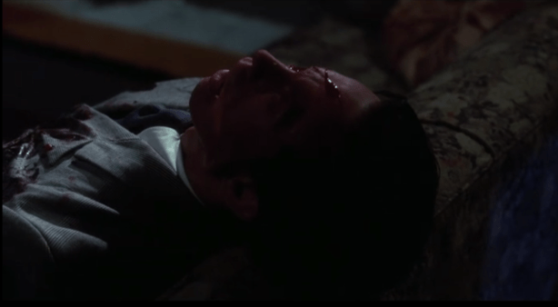 As the movie winds to a close, Virginia and Siegel make up. She admits to skimming the $2 million and offers to give it back. Siegel tells her to hang on to it. He flies back to LA that very evening, Christmas night, for a meeting with the boys. Cohen, who was at the opening in Las Vegas, somehow beats him to LA, and drives him to Virginia’s house. While reading the newspaper, he is gunned down through the window by multiple assailants and collapses on Virginia’s floral couch.