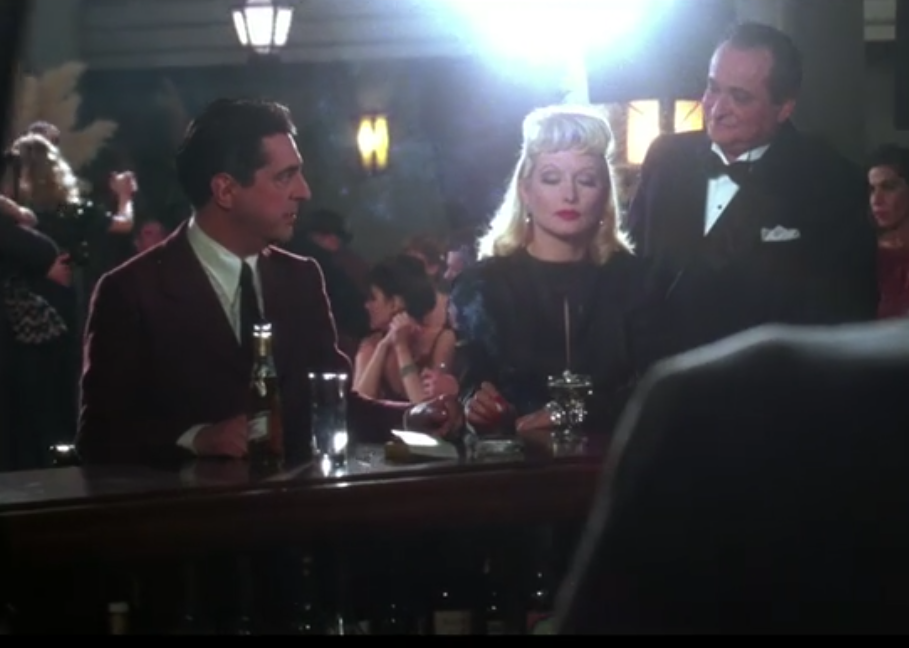 The film’s Siegel goes back to New York to attend a “deportation party” for Charlie Luciano and while there he and Esta call it quits.