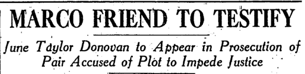 Nice try, Marco, but “the” June Taylor was easily recognized from a photo as “Mrs. A.M. Donovan.” She continued to elude the DA investigator’s, however.