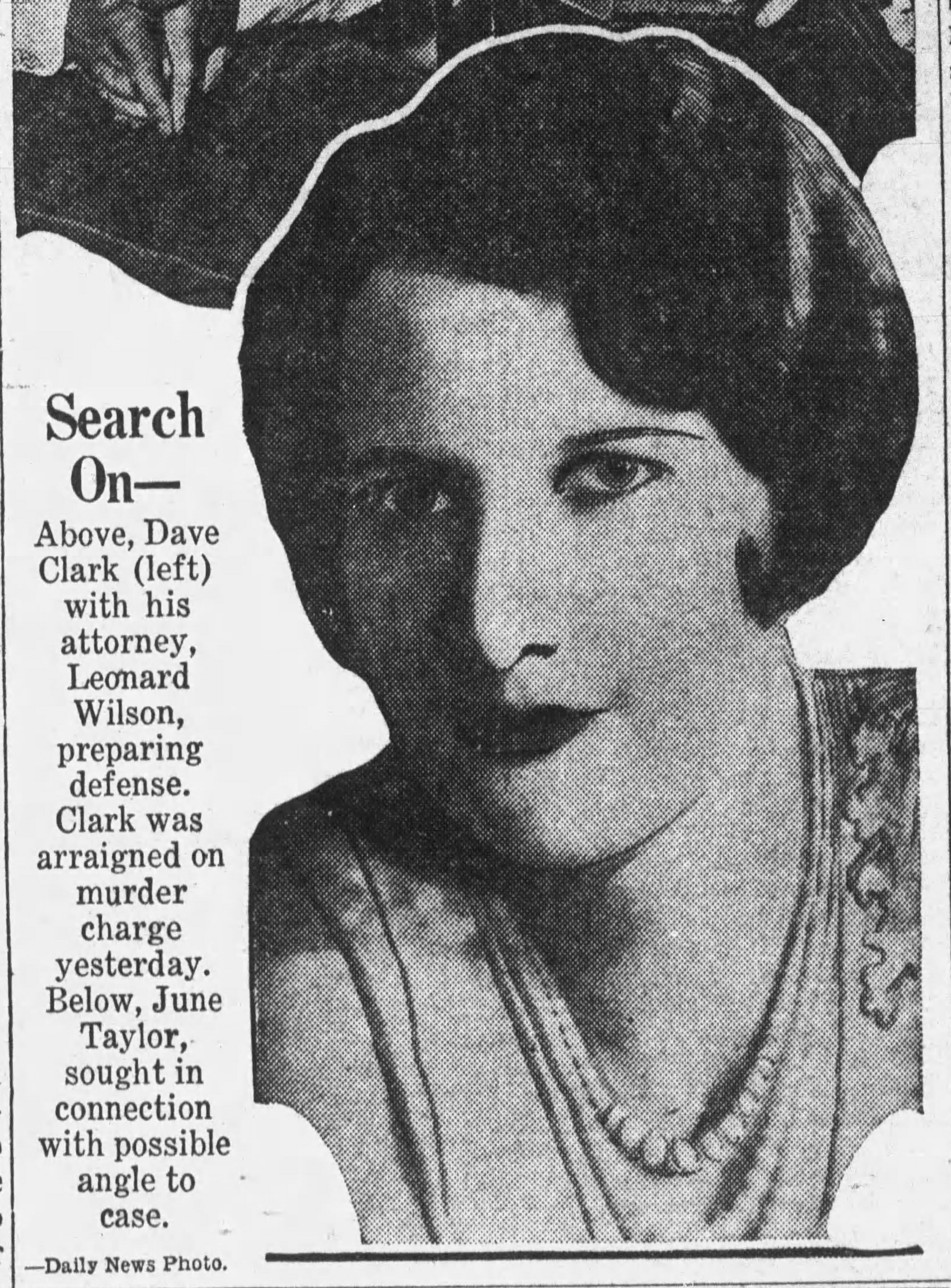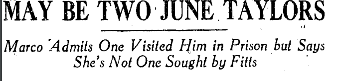 She was finally cornered on June 5, 1931 when she appeared in court on the hotel registry charge. Afterward Taylor spoke with special prosecutor Joseph Ford who was leading the case against Clark.Claiming she’d been too sick to speak to authorities before, she said she’d not seen Dave Clark in 3 years- not since Marco’s trial. As for her visits to Marco, they were just business and personal matters and had no connection of any kind to the Spencer and Crawford murders. She told the press afterward that she was nowhere near Crawford’s office that day and not in the company of Clark. Clark, who’d been released on $100,000 bond, echoed this, asserting he’d not heard of June Taylor for more than 3 years.