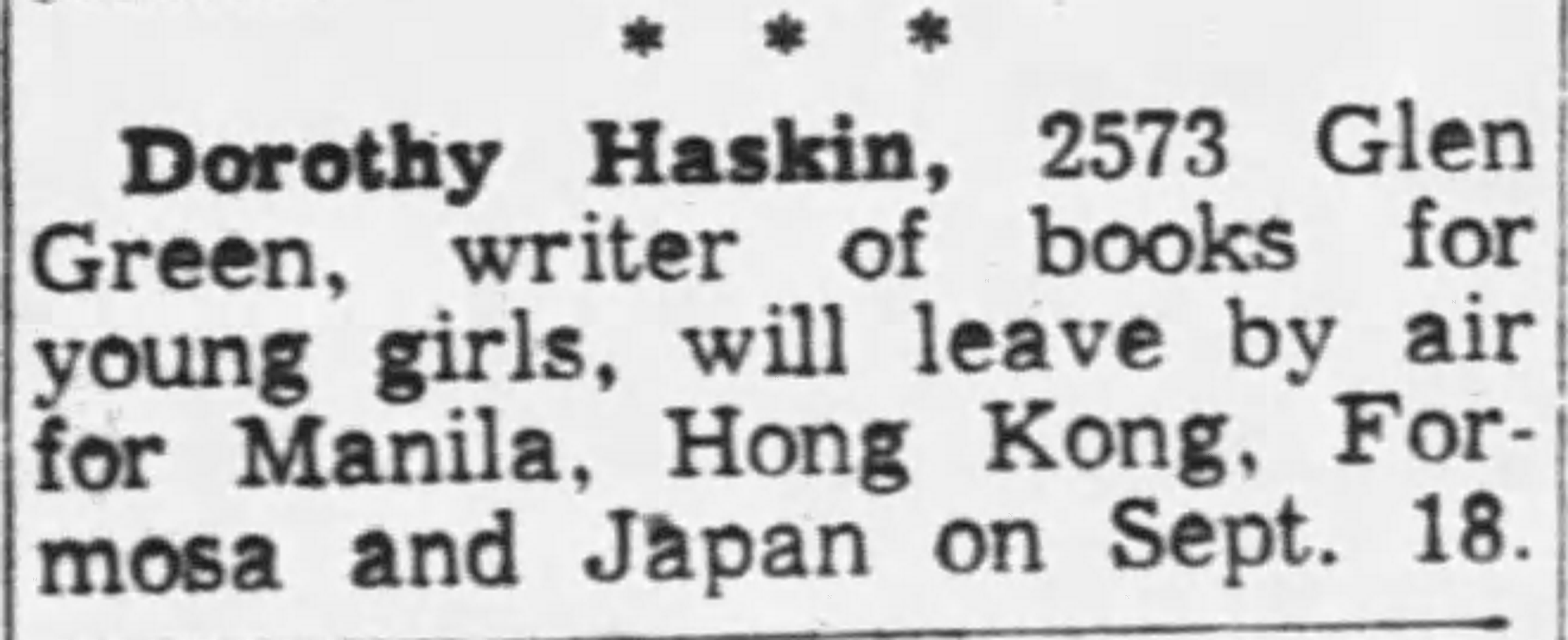 Dorothy was a frequent guest speaker at religious retreats and women’s events, telling highly fictionalized stories of her life. In the 1960s she toured Asia as a missionary.