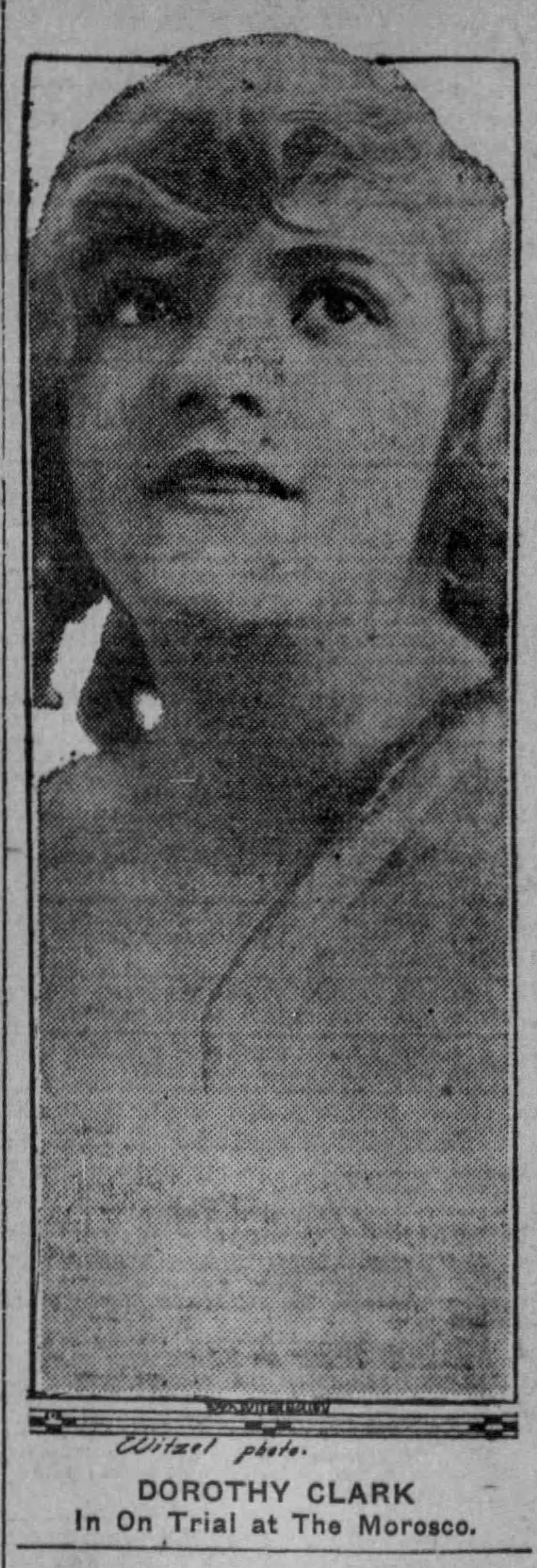 In 1916, she appeared on stage in juvenile roles in a few productions at the Los Angeles Morosco Theater, including “The Dummy,” a “lively detective comedy,” and one whose title foreshadowed her future: “On Trial.” She is sometimes billed as “Dorothy Love Clark.”