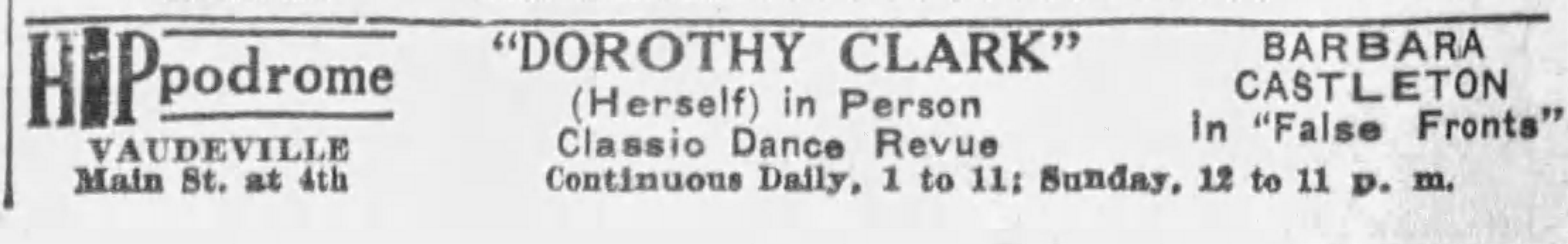 Dorothy returned to Los Angeles and the week of November 7, 1922, appeared in a vaudeville at the Hippodrome Theater on South Main Street.