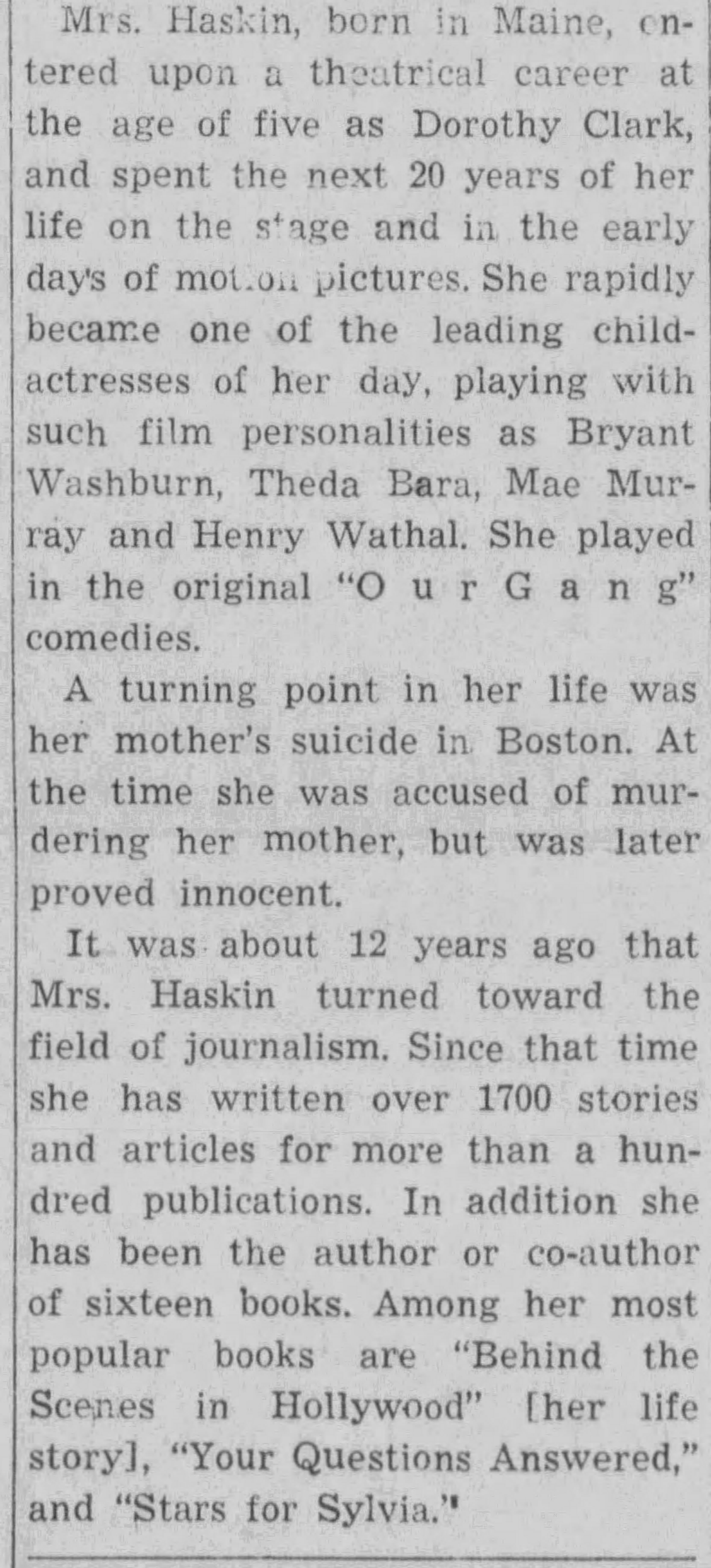 Newspapers no doubt thought it made a better story if Dorothy had been “famous.” Infamous, maybe. But famous? No. 3/6/1931