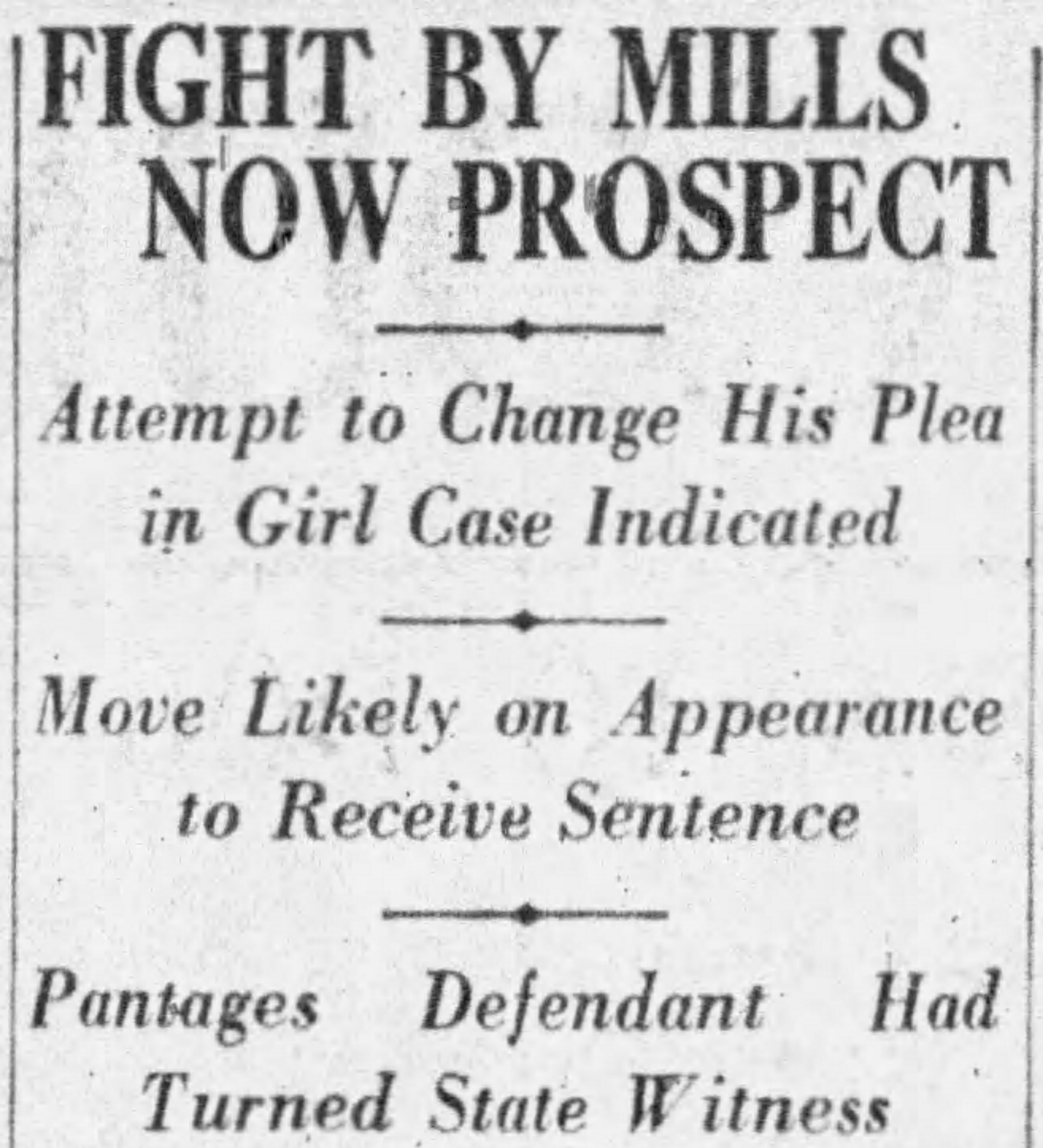 On September 9, 1931, it was reported that Fitts was seeking to drop the felony statutory charges against Mills so that he could use Mills as a witness against Jobelmann and Dorothy in the misdemeanor charges against them. Huh?
