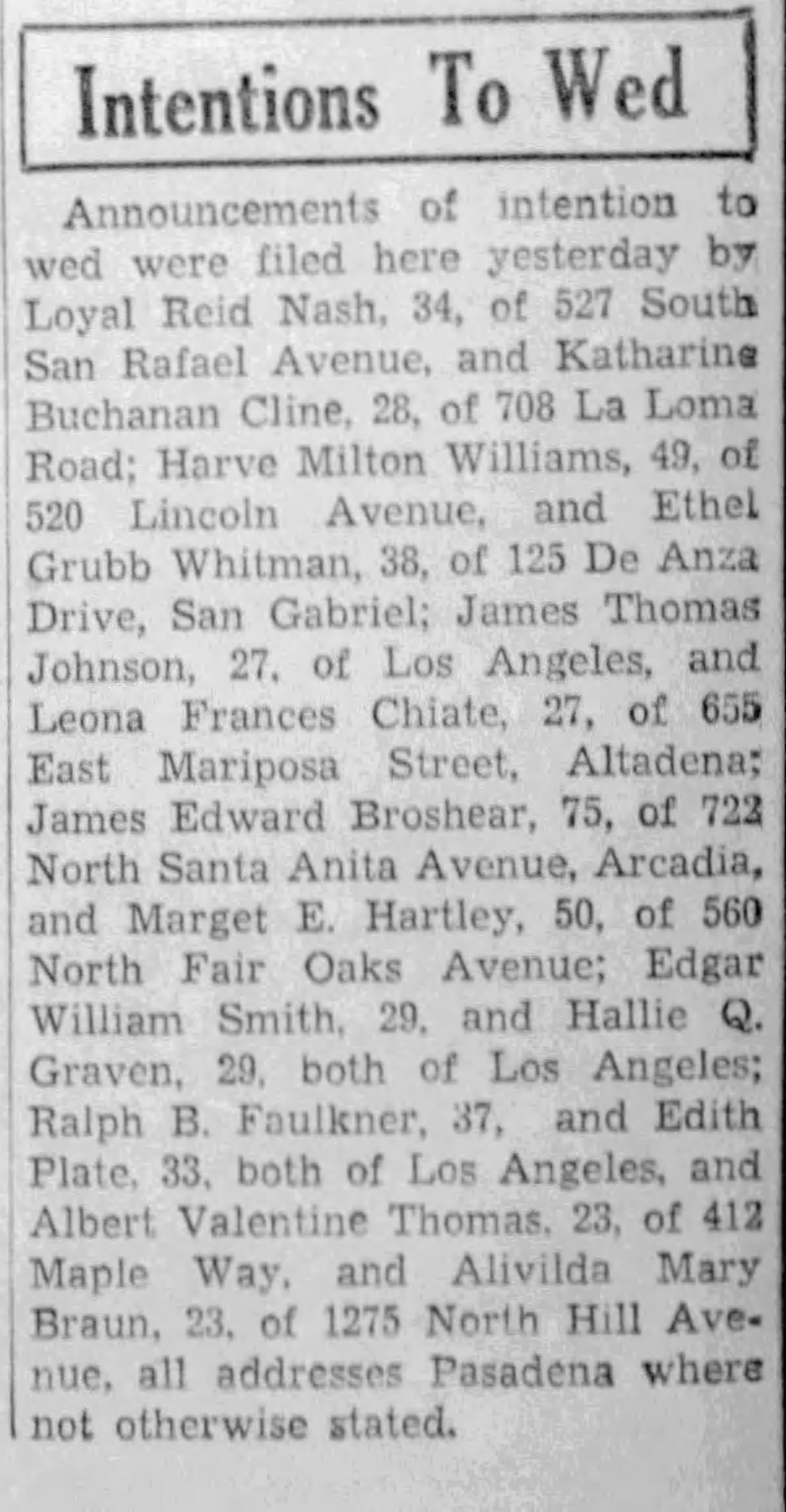 Faulkner and Plate were married in late 1936. By November 1936, Faulkner had organized his own school of fencing, the Faulkner Fencing Academy, aka the Faulkner School of Fencing. By January 1937, it was officially affiliated with the Edith Jane School. In April of that year, the Edith Jane School, which was still at 1759 N. Highland Avenue, announced that it had leased an entire building at 5610 Hollywood Boulevard. That building will have its own post.