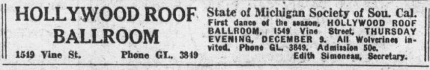 Ad for the Hollywood Roof 12/8/1926. LA Daily News.