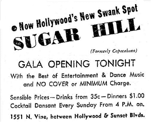 Ad for the opening of Sugar Hill at 1551 N. Vine, 12/24/1941.