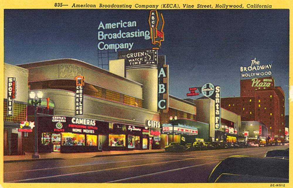 Postcard view of Vine Street c. 1952 with Santa Fe’s signage at 1551 N. Vine.