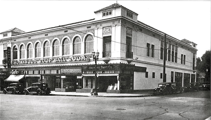Completed by the fall of 1925, the upper floor housed a ballroom, The Hollywood Roof, addressed as 1549 N. Vine, from 1925 to 1930.