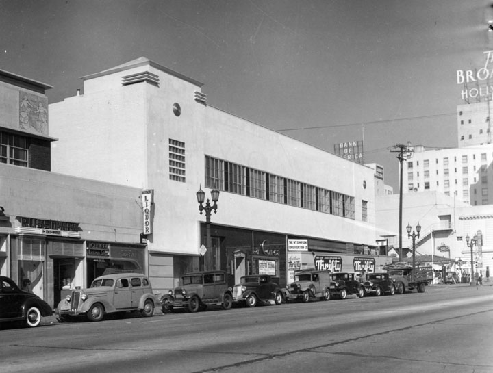 In February 1934 Packard dealer W. H. Collins leased the property’s Hollywood Boulevard frontage for one of his used car lots, while the Spiritualist Church continued to occupy the building itself.