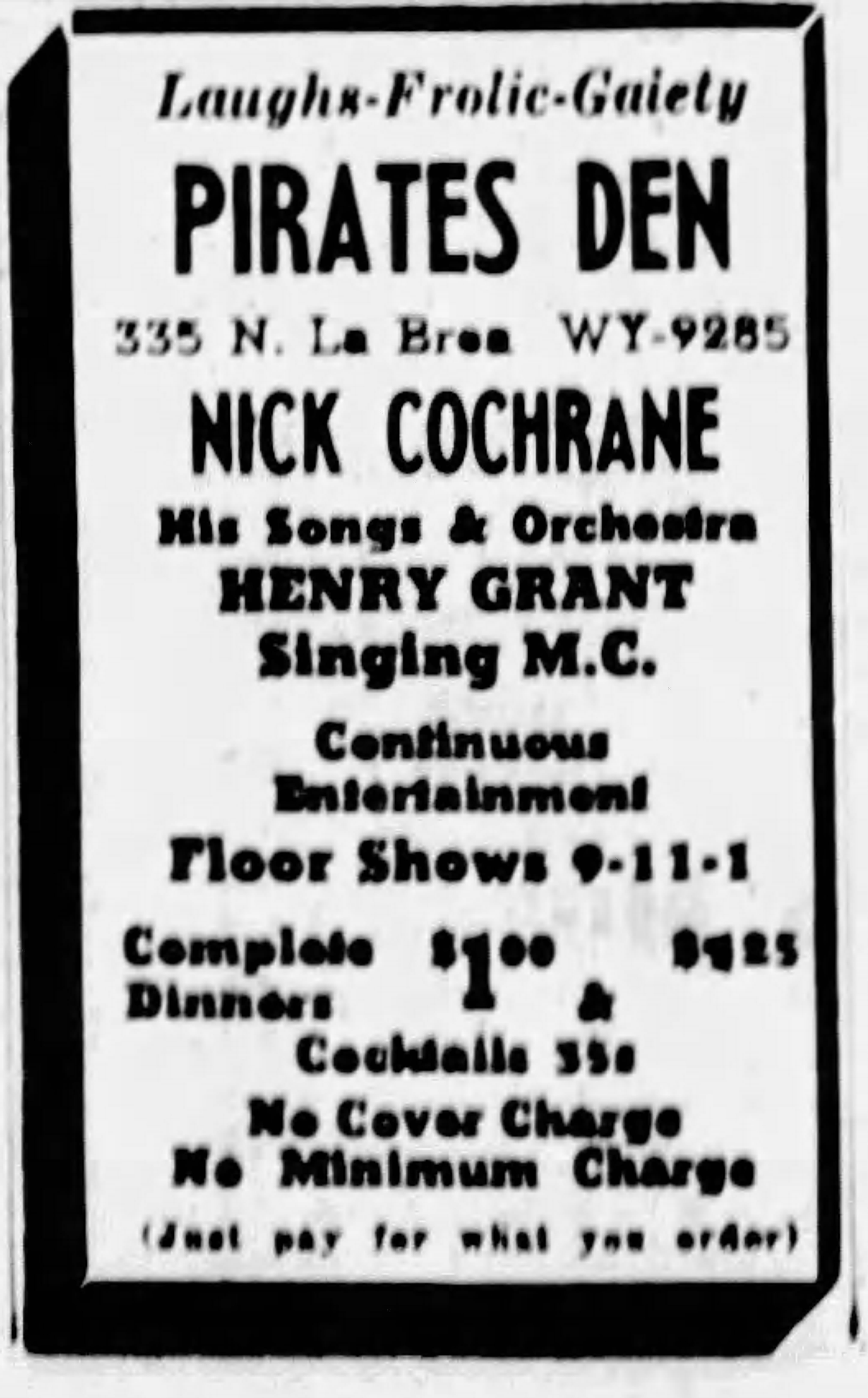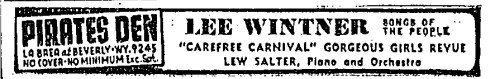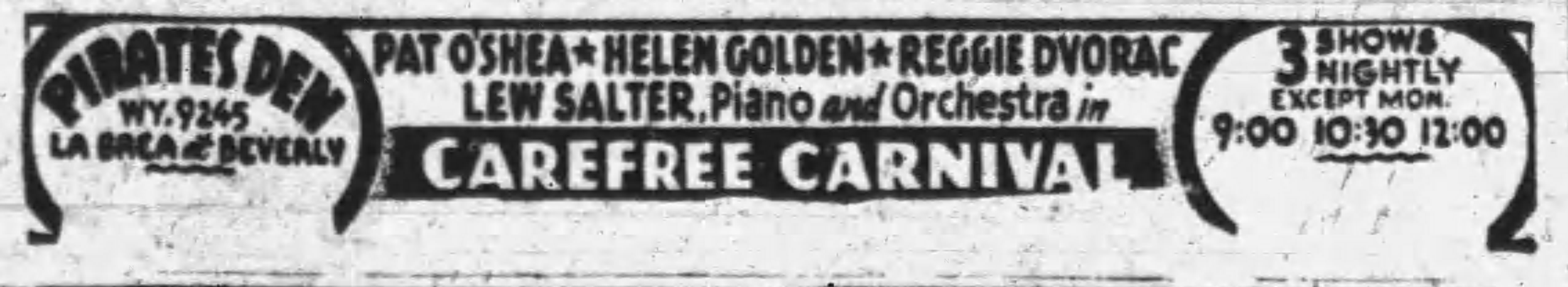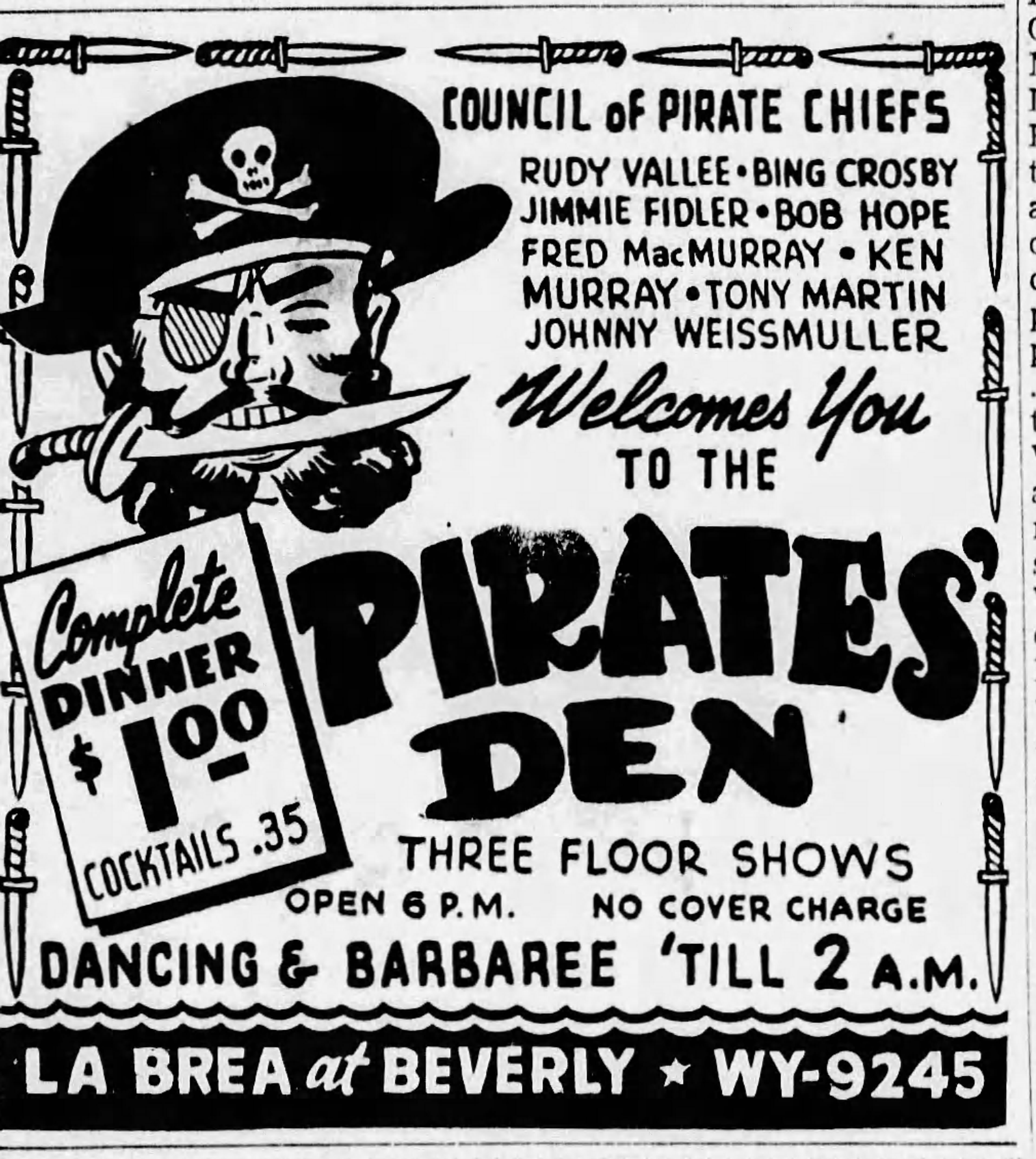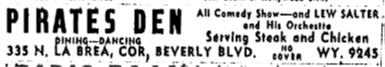 This San Fernando Valley Times as for The Pirate’s Den still refers to some of the celeb owners of the club. 9/5/1941