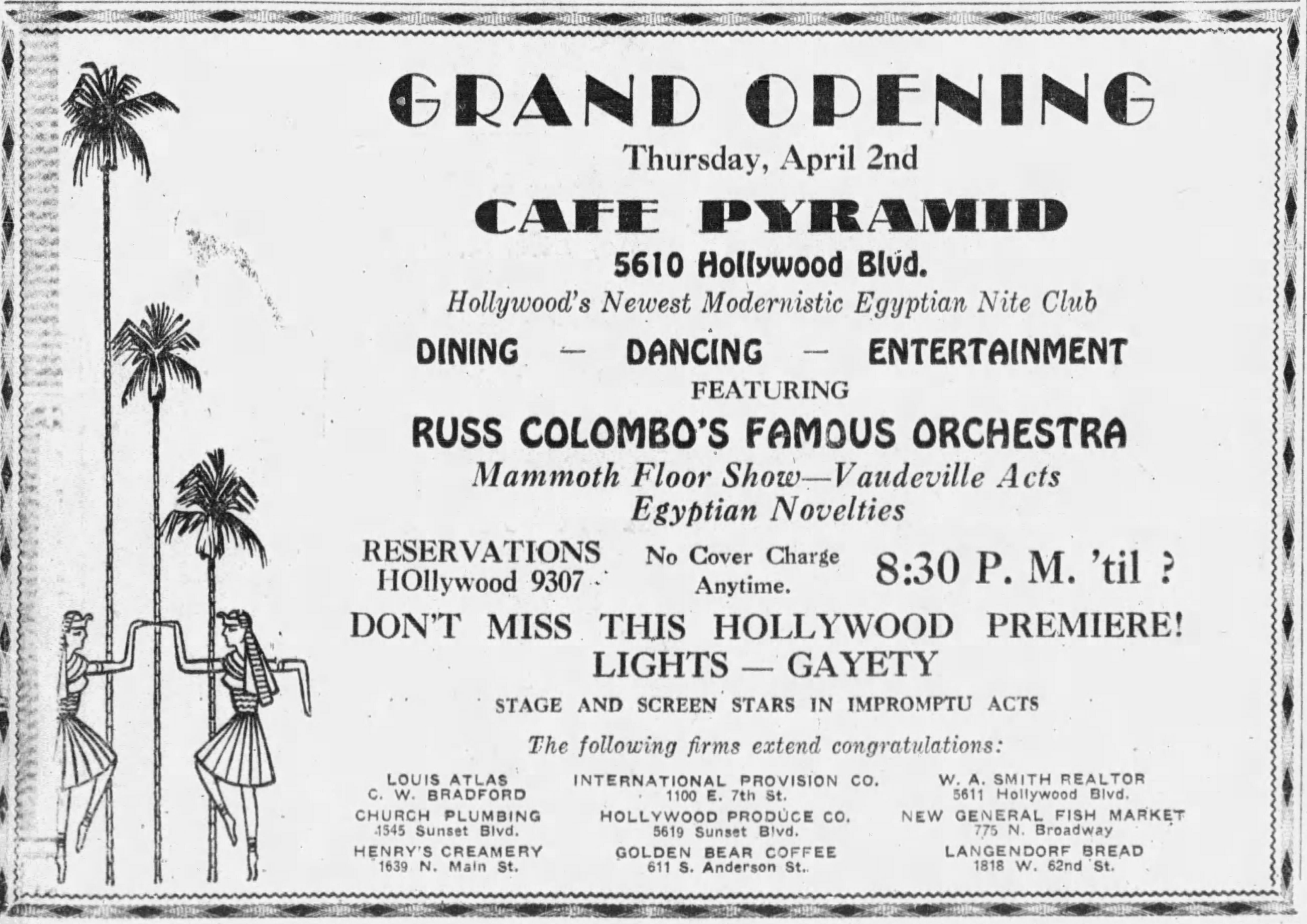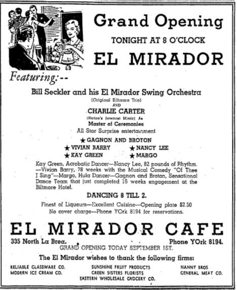Shortly thereafter, 1551 changed hands again. Louis Prima headlined at the unnamed club, “Hollywood’s newest,” on July 2, 1937.