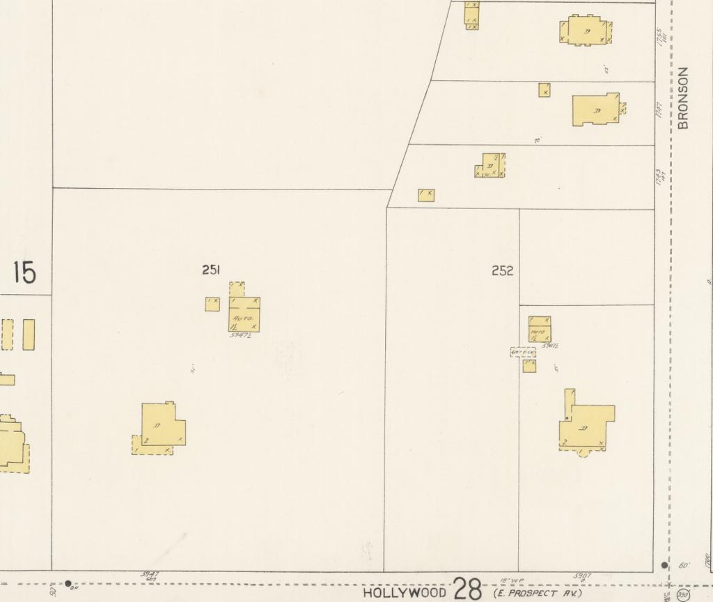 Detail of a 1913 Sanborn Fire Insurance Company map for Hollywood. Library of Congress.