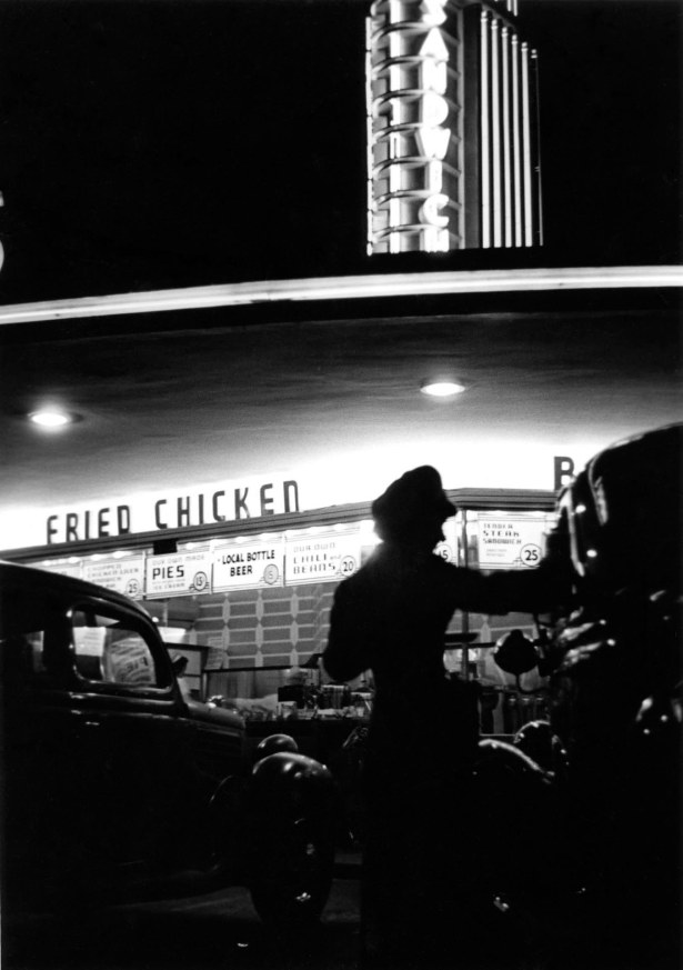The Hula Hut exterior c. December 1937 when Andy Iona and Sam Koni were appearing. The neon roof sign appears to be a redesign of the Ye Bull Pen’s sign, which had moved with the restaurant from a previous location at 633 S Hope St. LAPL photo.