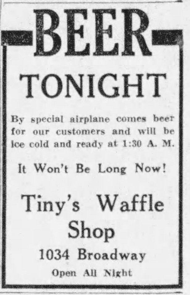 Beer and wine sales were legalized in March 1933; liquor and spirits were allowed after full Repeal in December 1933 (see my post “The Return of Beer.”). The period right after federal Prohibition ended through 1934, however, was confusing, with State liquor laws up in the air as regulations were sorted out. Don’s Beachcomber Cafe may have been operating as a “bottle club,” establishments that skirted the law by acting as a private club- they technically didn’t sell alcohol but could be served liquor from their own stash.