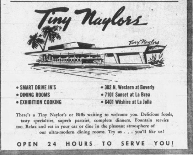 This short-lived Hawaiian-themed club opened on October 8, 1937 at 335 N. La Brea near Beverly Boulevard. The building was constructed in 1927 as Ead’s Castle restaurant.