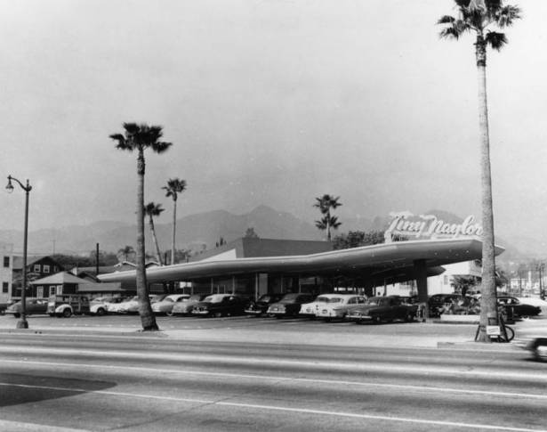 Slauson Avenue in April 1940, photographed by Dick Whittington. The Zamboaga is seen in the middle right, before its 1941 expansion. USC photo.