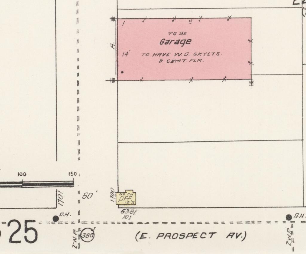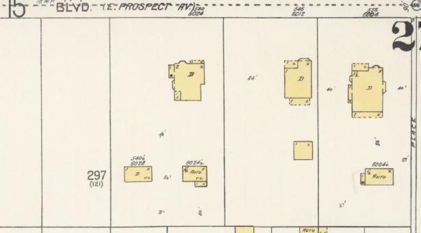 Detail of a 1913 Sanborn Fire Insurance Co. map for Hollywood. The parcel that became 6030-6038 was still vacant. The Rich family also owned both parcels directly to the east (6024-6028) and west (6048). Library of Congress map.