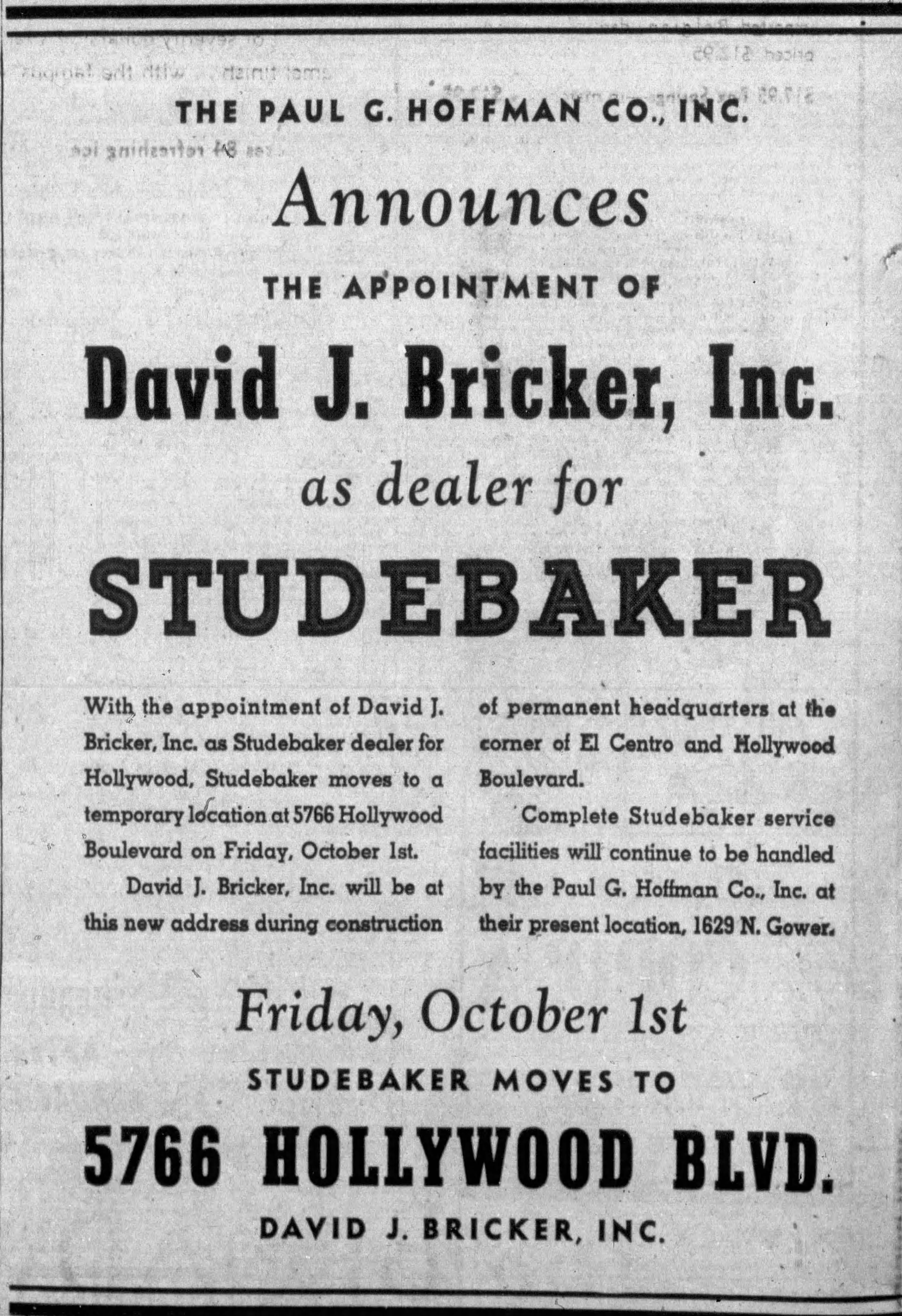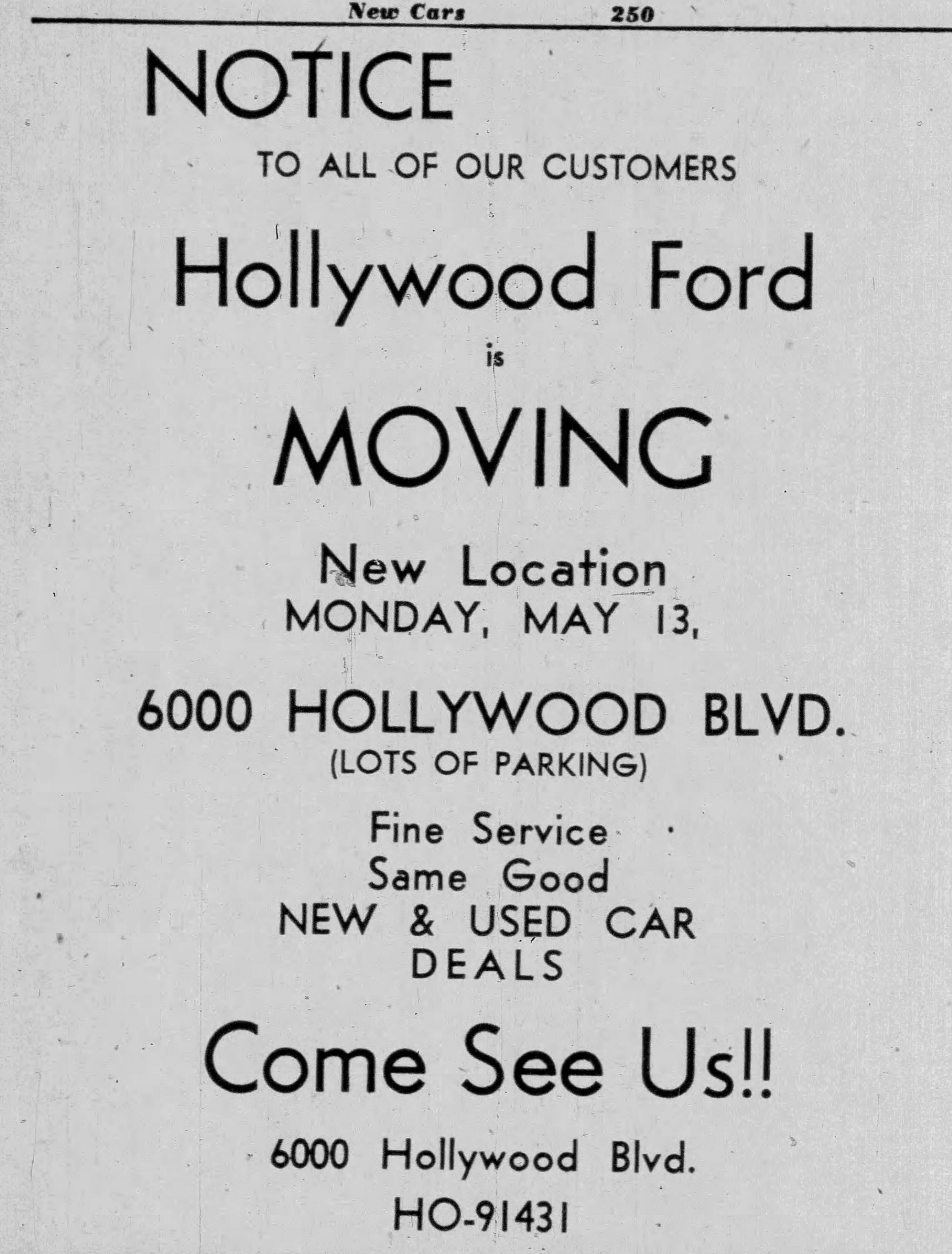 A. E. England Pontiac moved out of 6032 after September 1944, relocating up the block at 6161 Hollywood Boulevard.