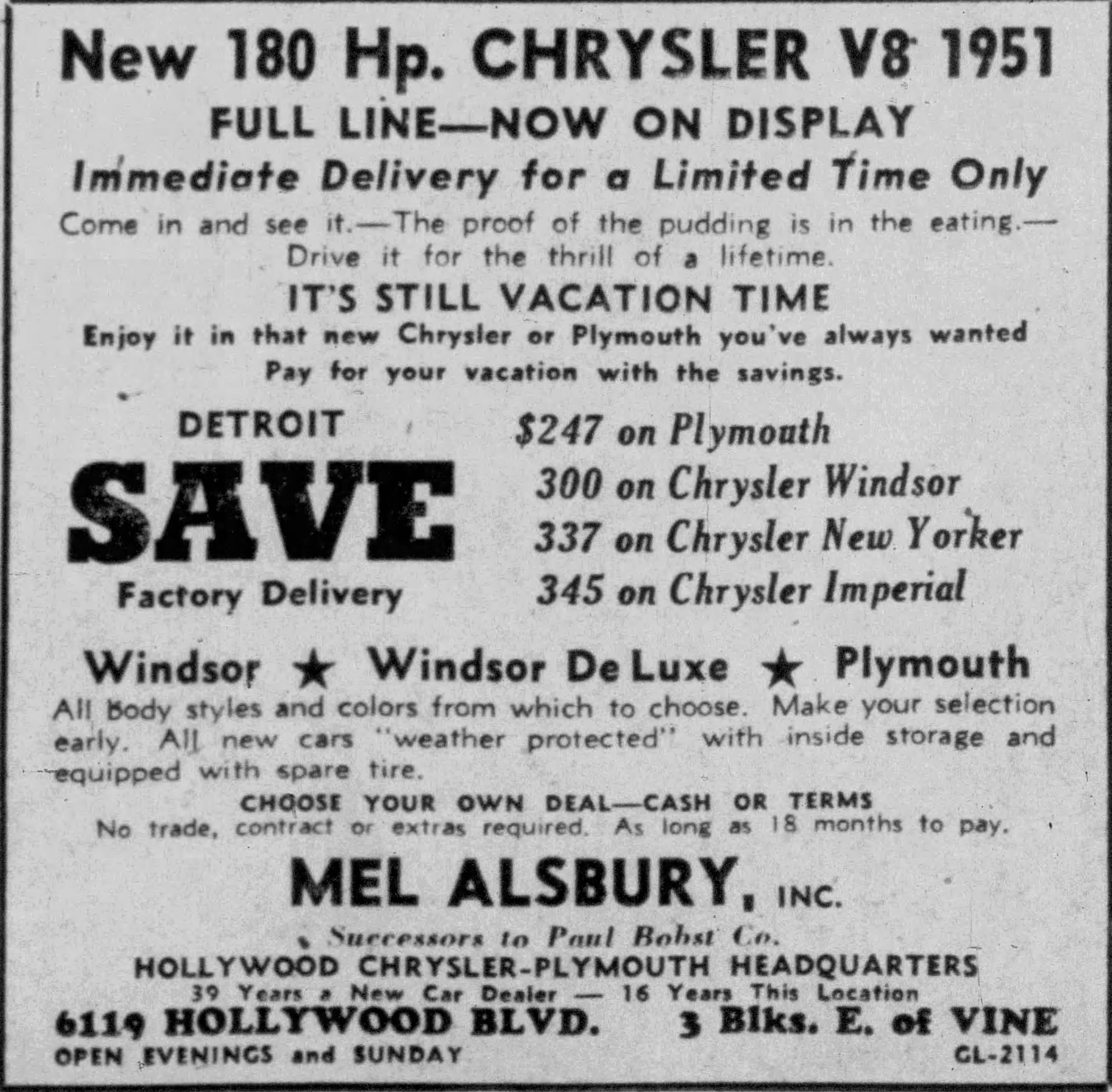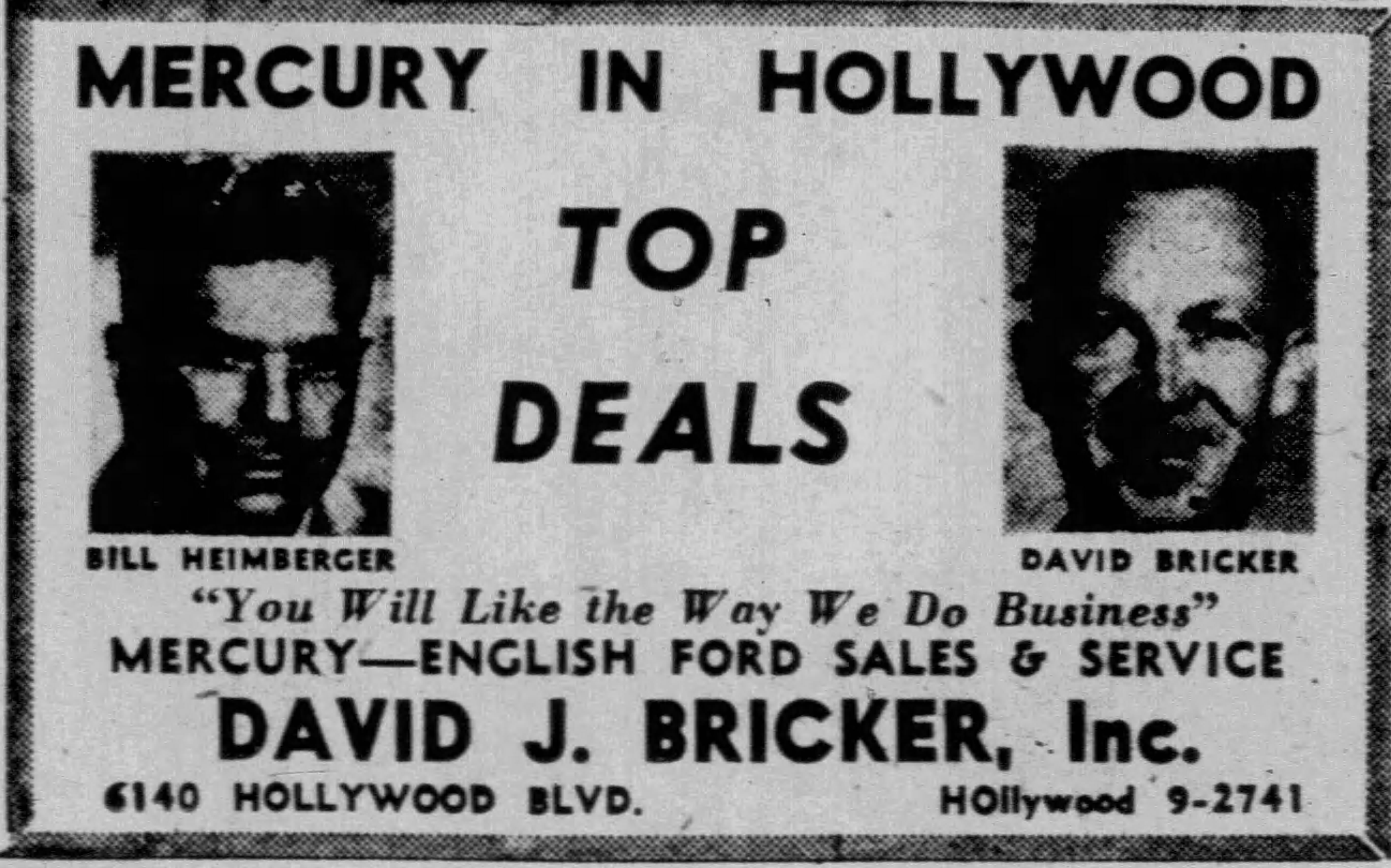 In November 1950, manager Ted Faull announced that a modernization and reorganization of the space was nearing completion. Customers would now be able to enter the service department from Hollywood Boulevard but would exit onto Carlton Way, thereby avoiding traffic on the Boulevard. This indicates the dealership must have been routing customers along the south (rear) part of the property, and to the east past 6028 and 6000 Hollywood Boulevard to the alley called Brokaw Place that connected Hollywood Boulevard to Carlton Way between 6000 and the Mountain View Inn at 5956 Hollywood Boulevard.