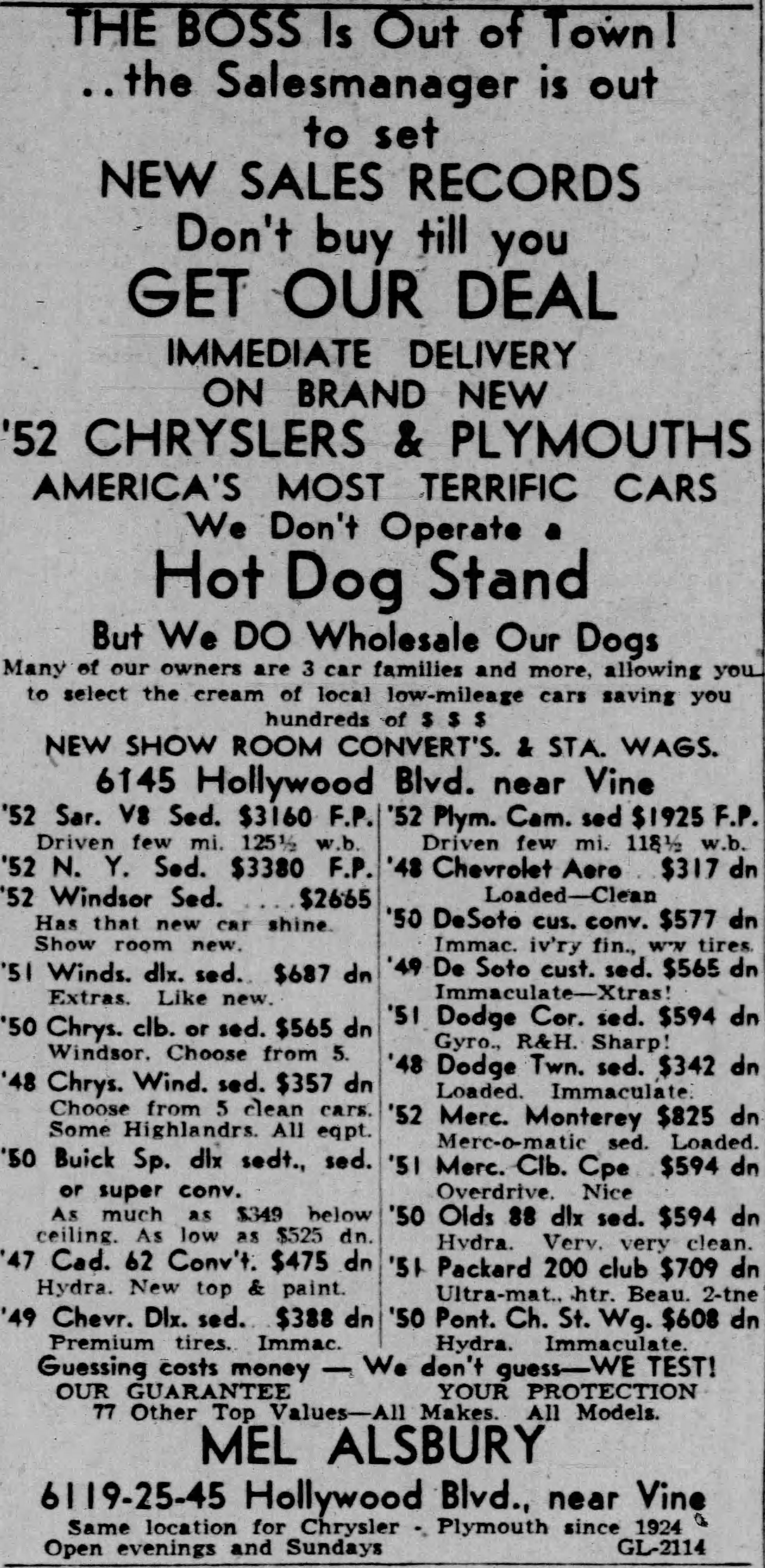 “Why put up with mere transportation?” By all means, shame the Depression-era car buyer into taking on more debt, Glenn! Hollywood Citizen News 3/1/1933.