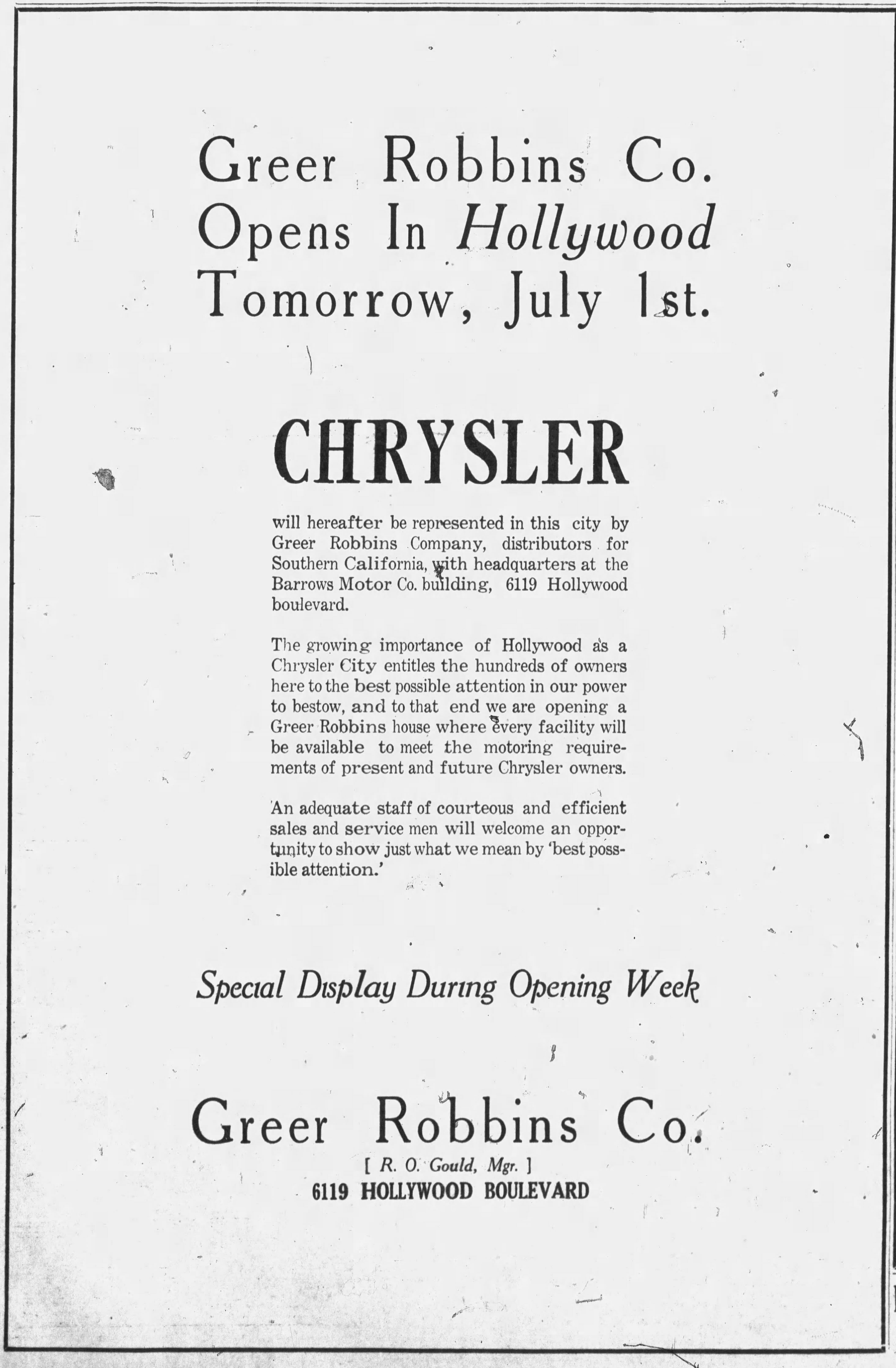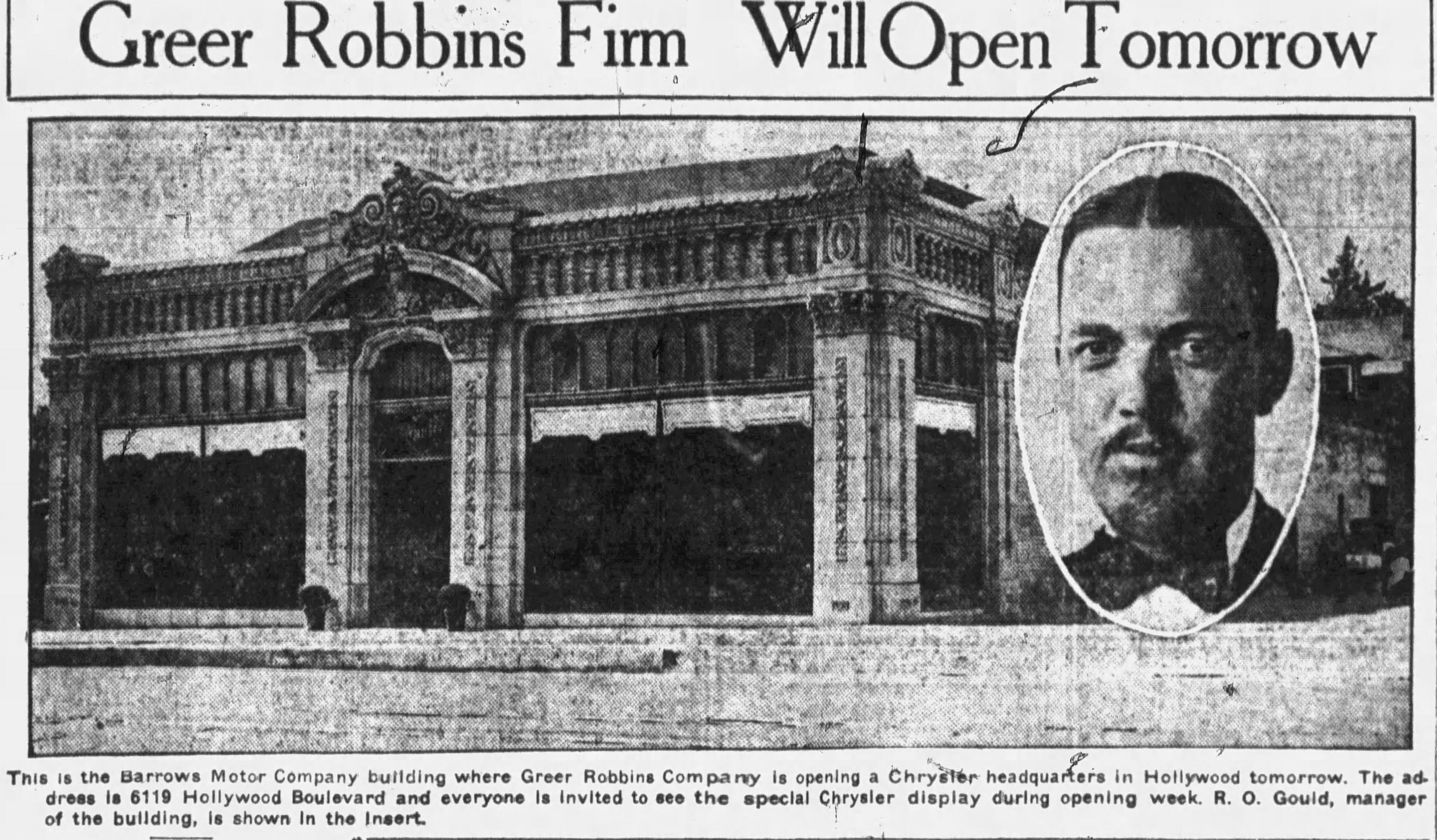 Though the papers stated that the existing 1-story building would be demolished and a new auto showroom built in its place at a cost of $20,000, that was either a mistake or a deliberate fib- the same day of the announcement, the siblings obtained a permit to modify the existing building at a cost of $20,000. From now on it would be 6032 Hollywood Boulevard.