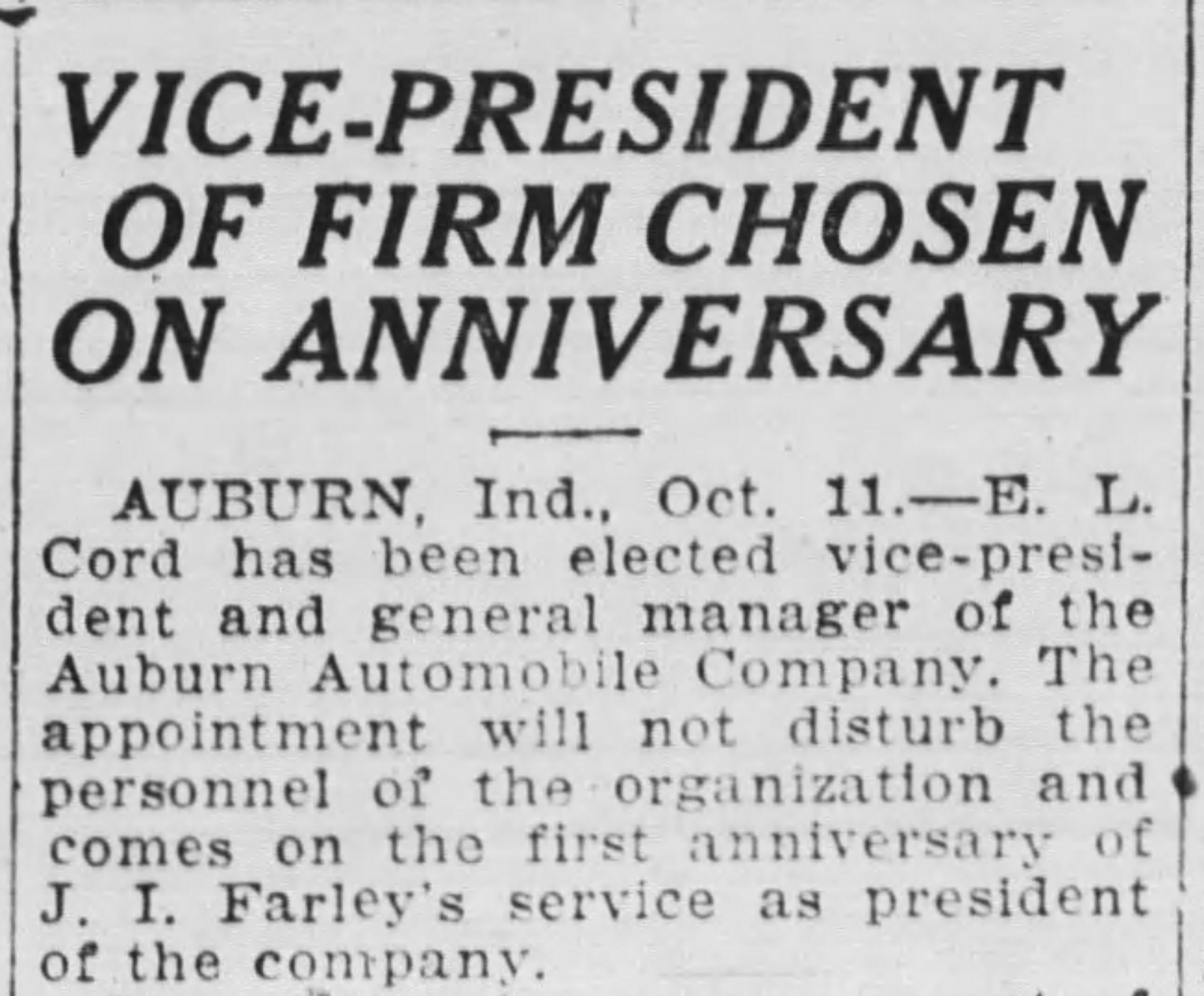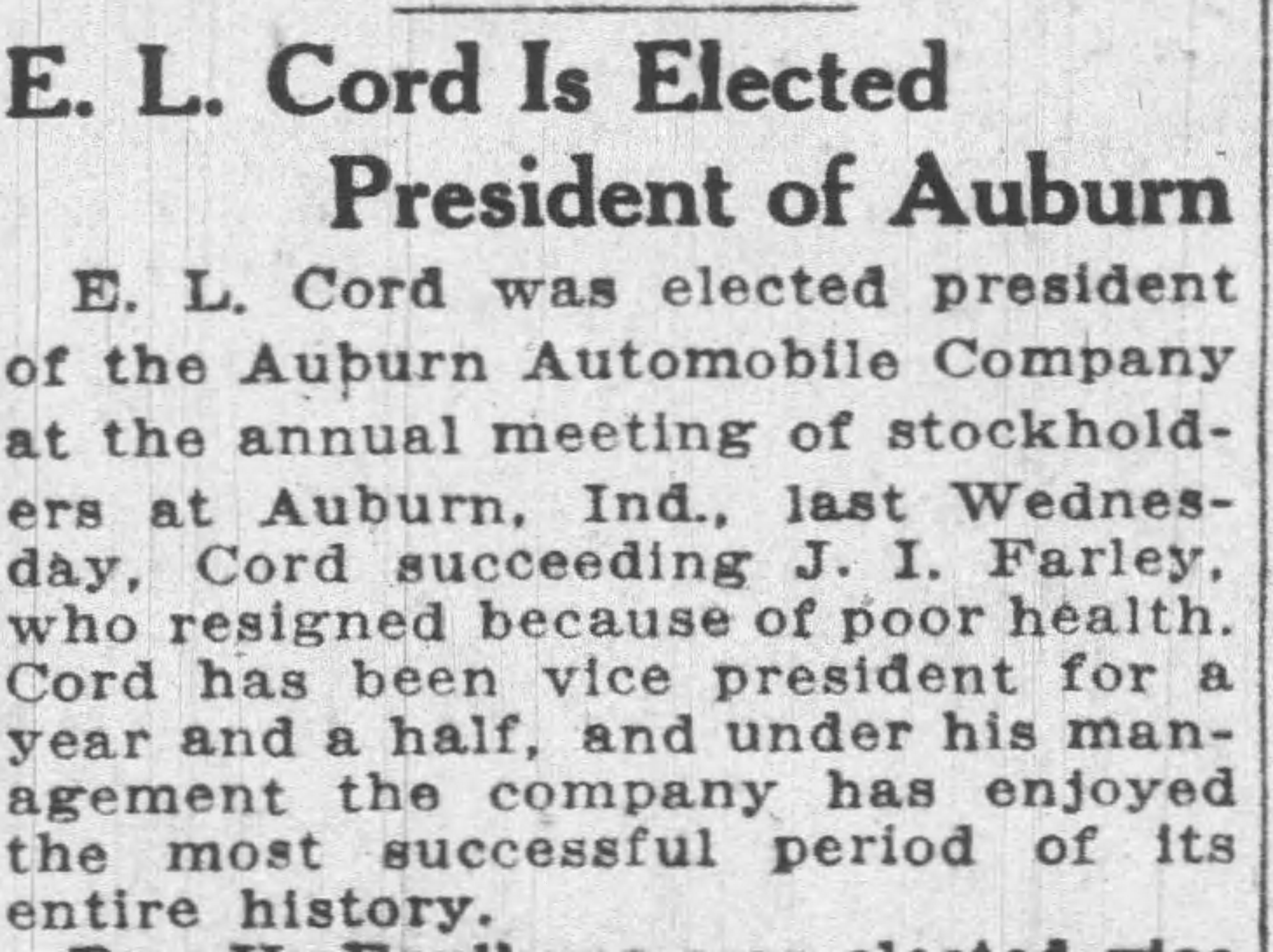 H. H. Goodrich, president of Leo Coryell, Inc., took over the dealership in April 1932, now selling the Pontiac only as GM phased out the Oakland in 1931. He was only in business briefly and closed out the shop in November 1932.