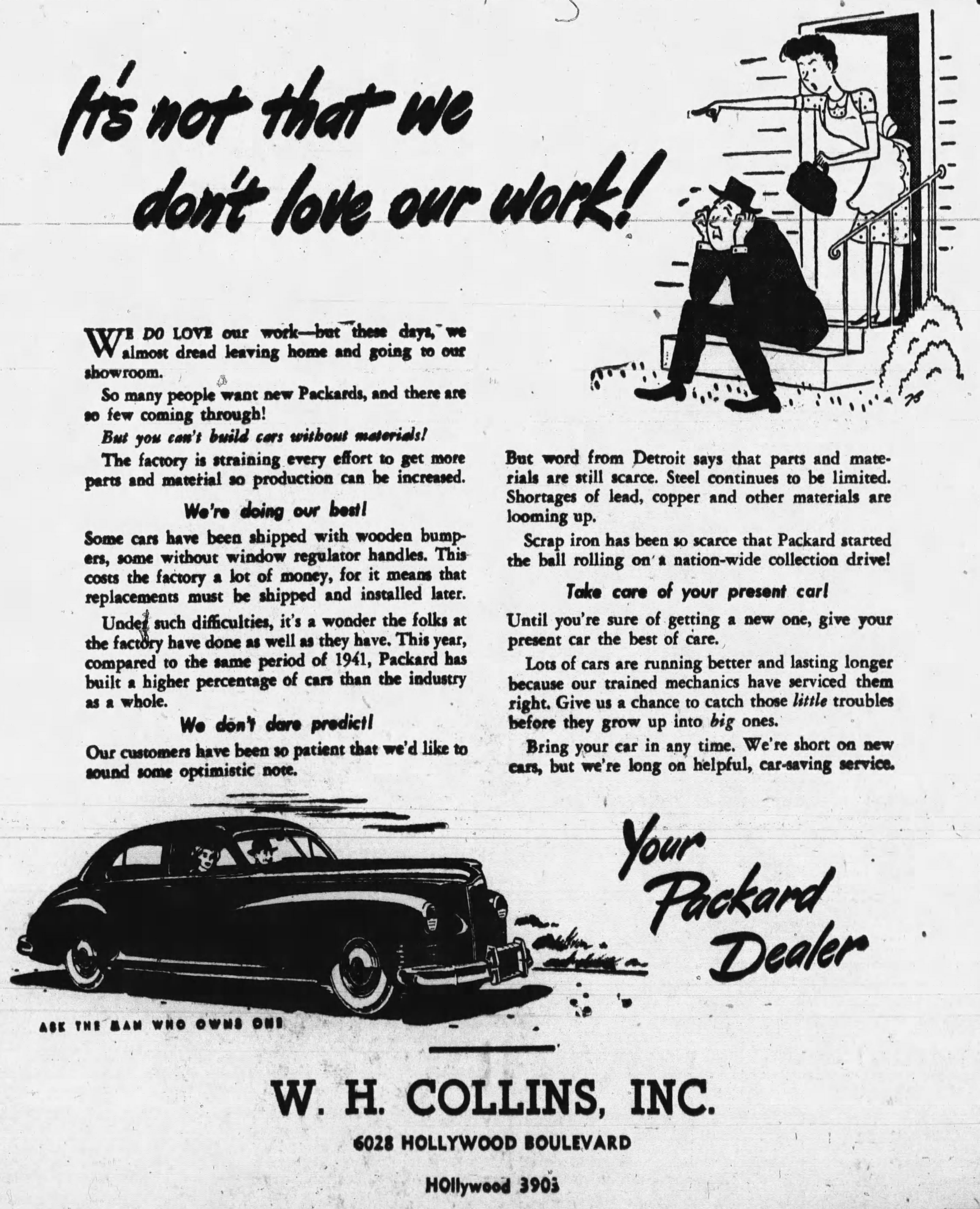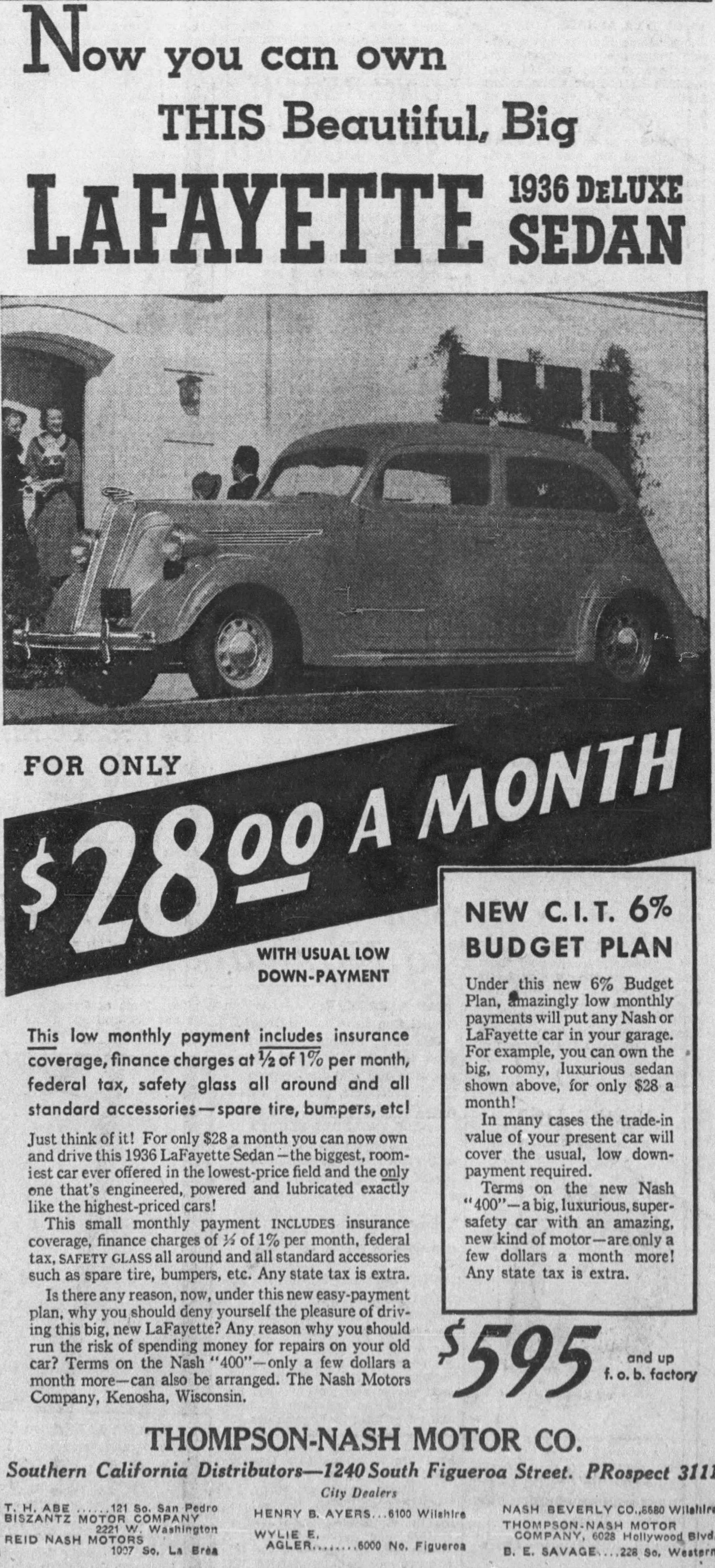 “Why put up with mere transportation?” By all means, shame the Depression-era car buyer into taking on more debt, Glenn! Hollywood Citizen News 3/1/1933.