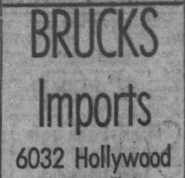 In September 1959, Stan Brucks Oldsmobile had an import division called Brucks Imports at 6032 Hollywood Boulevard, and was an authorized dealer of the Toyopet along with other import makes- including Triumph and Singer motor cars from Britain and the Volvo.