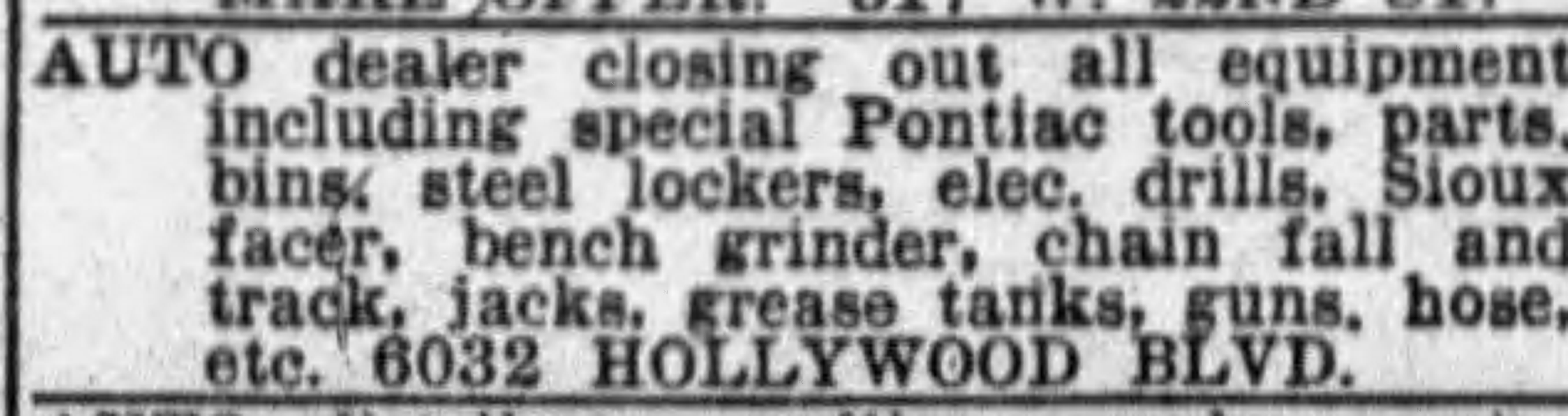 A. E. England Pontiac moved out of 6032 after September 1944, relocating up the block at 6161 Hollywood Boulevard.