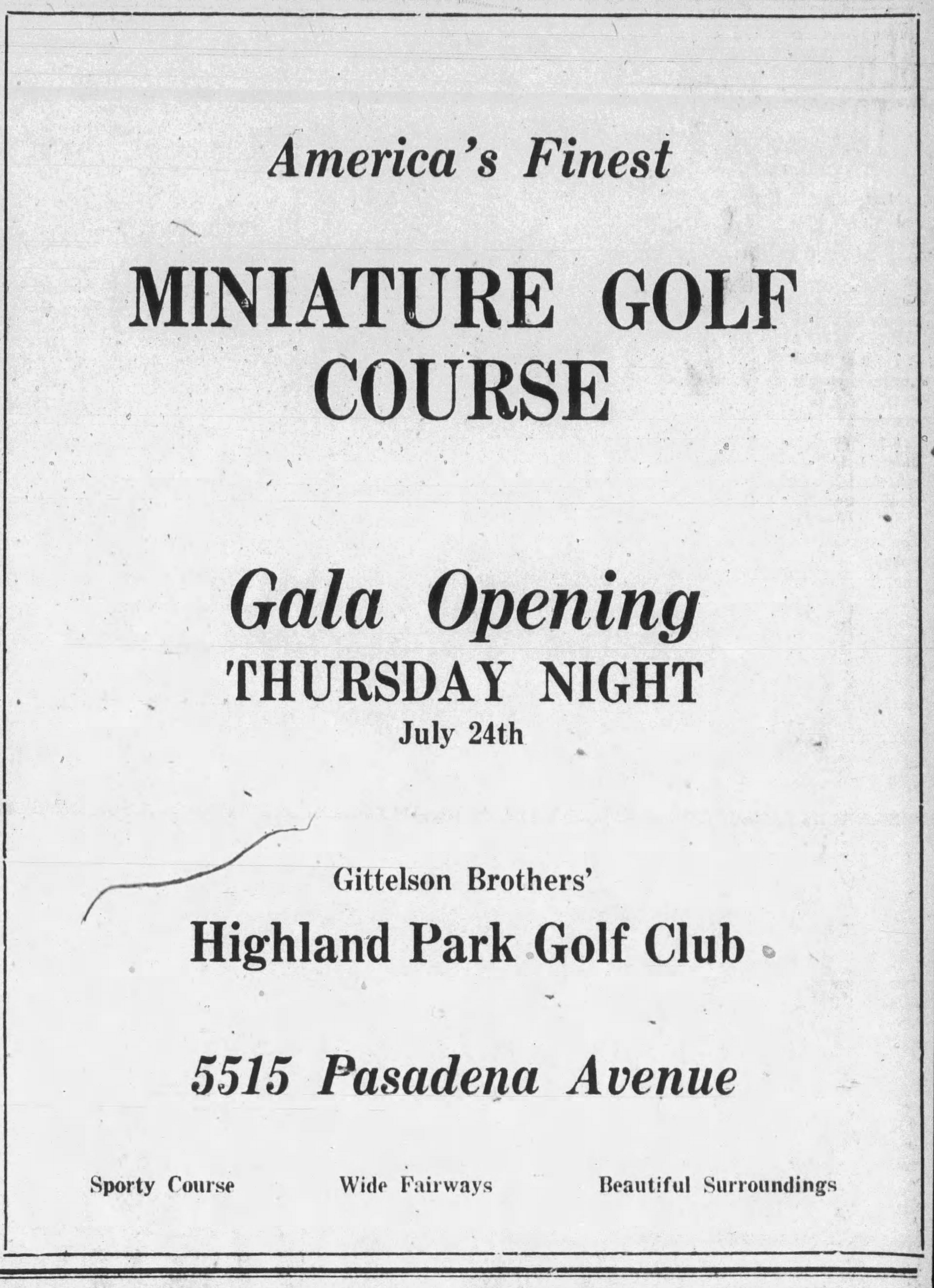 Organized by Sid Algier, a film director, it was meant to be the first in a chain of Eskimo Villages. The course was designed and built by H.C. Lydecker, a former art director and miniatures expert with the Tiffany-Stahl studio. It had an Alaskan theme with Hollywood studio snow, wrecked ships, totem poles, icebergs and igloos. It opened on the evening of August 7, 1930. Actress Alice White and her future husband, screenwriter Sidney “Sy” Bartlett, officiated.