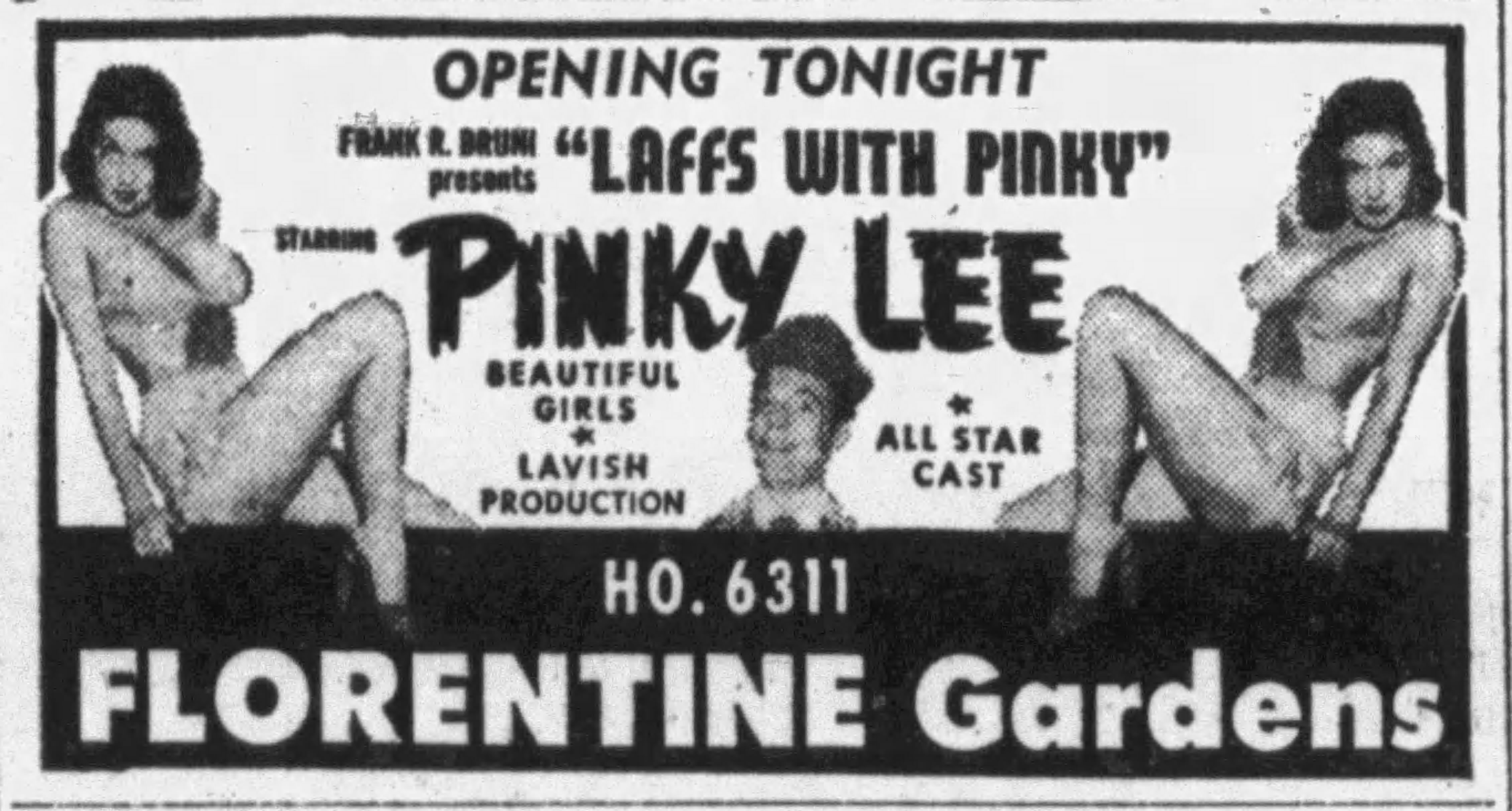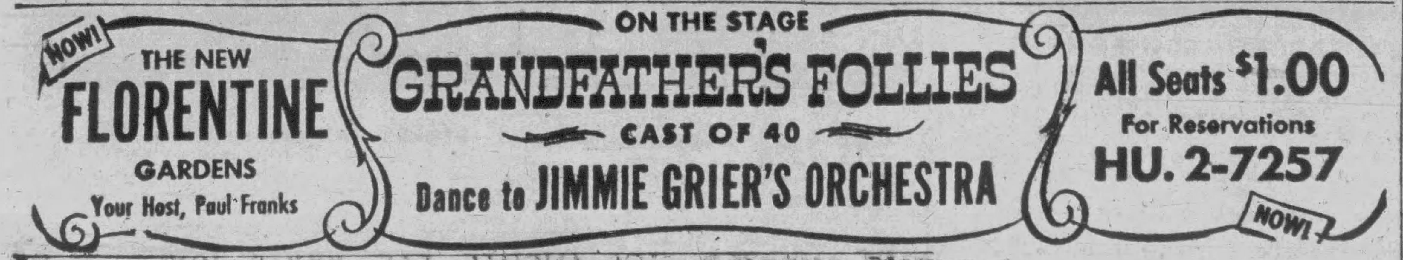 A new review, Follies Bizarre” opened August 8, 1949. On September 30, 1949, the venue ushered in a “vaudeville police” with the “Florentine Follies.”