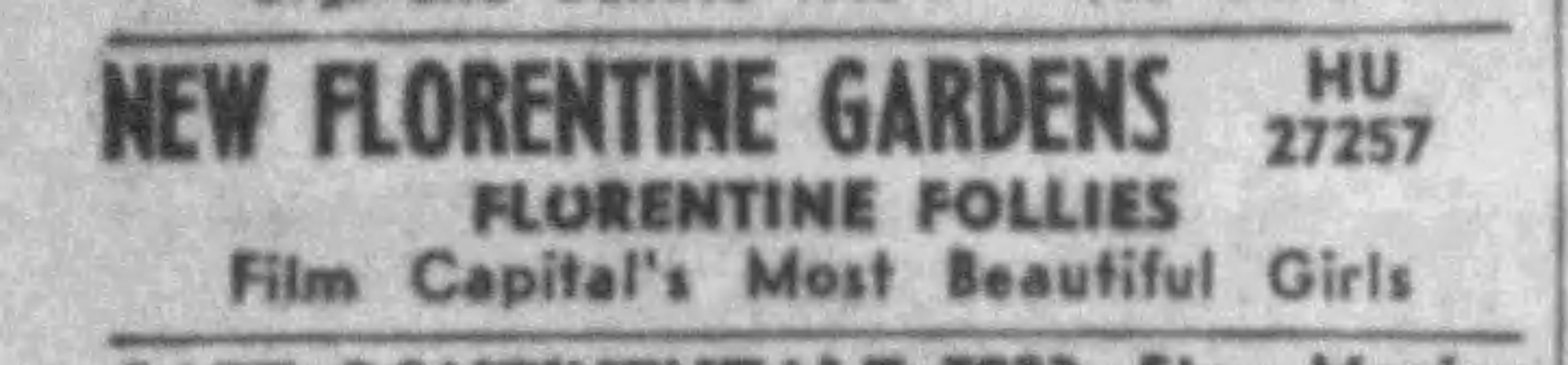 Mark Hansen was a theater owner whose holding included the Marcal Theater just up the street at 6025 Hollywood Boulevard near Glower. There’s no reason to think he had any connection to the Florentine Gardens at this date.