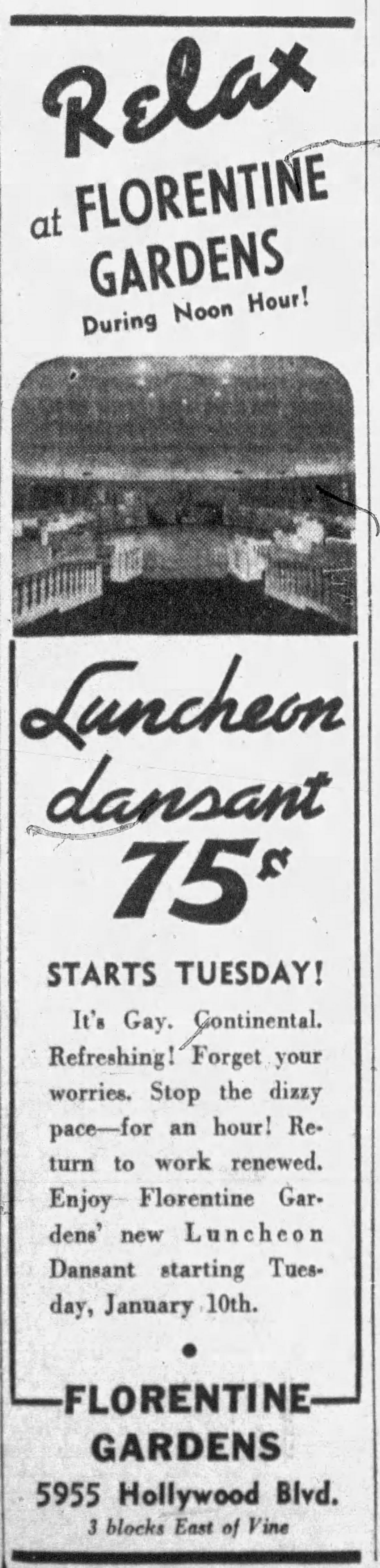 Florentine Gardens wound down after the new year and does not appear to have been open regularly, though special banquet events would still be held there.