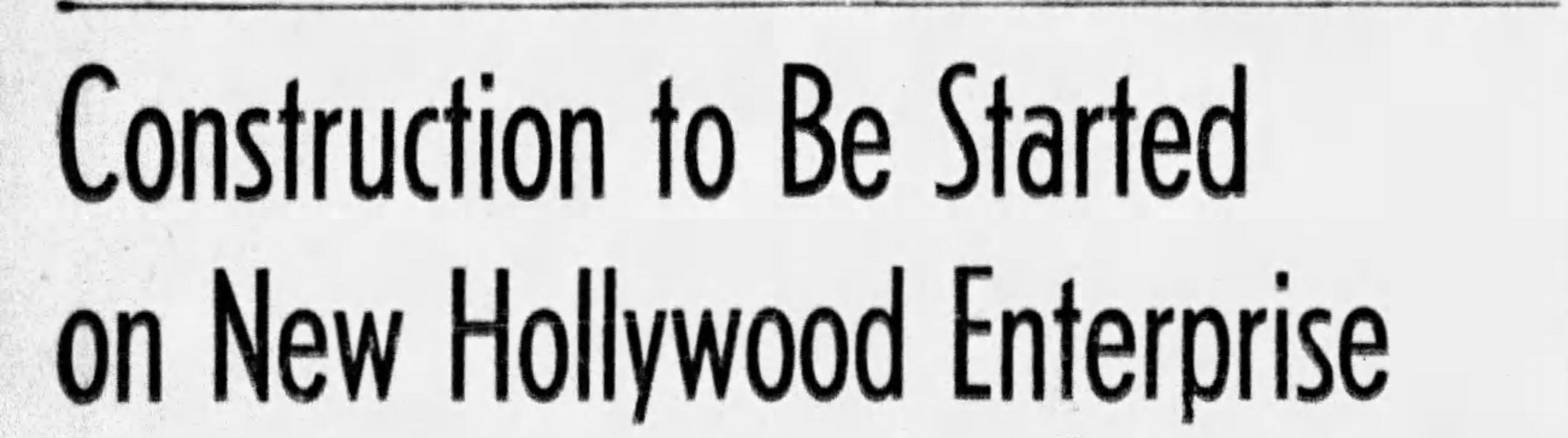 On November 14, 1947, gossip columnist May Mann reported that NTG and Mark Hansen were going to open a 12-story hotel on Hollywood Boulevard near Gower, with a cabaret on the roof. Construction was to begin “shortly.” This project never happened.